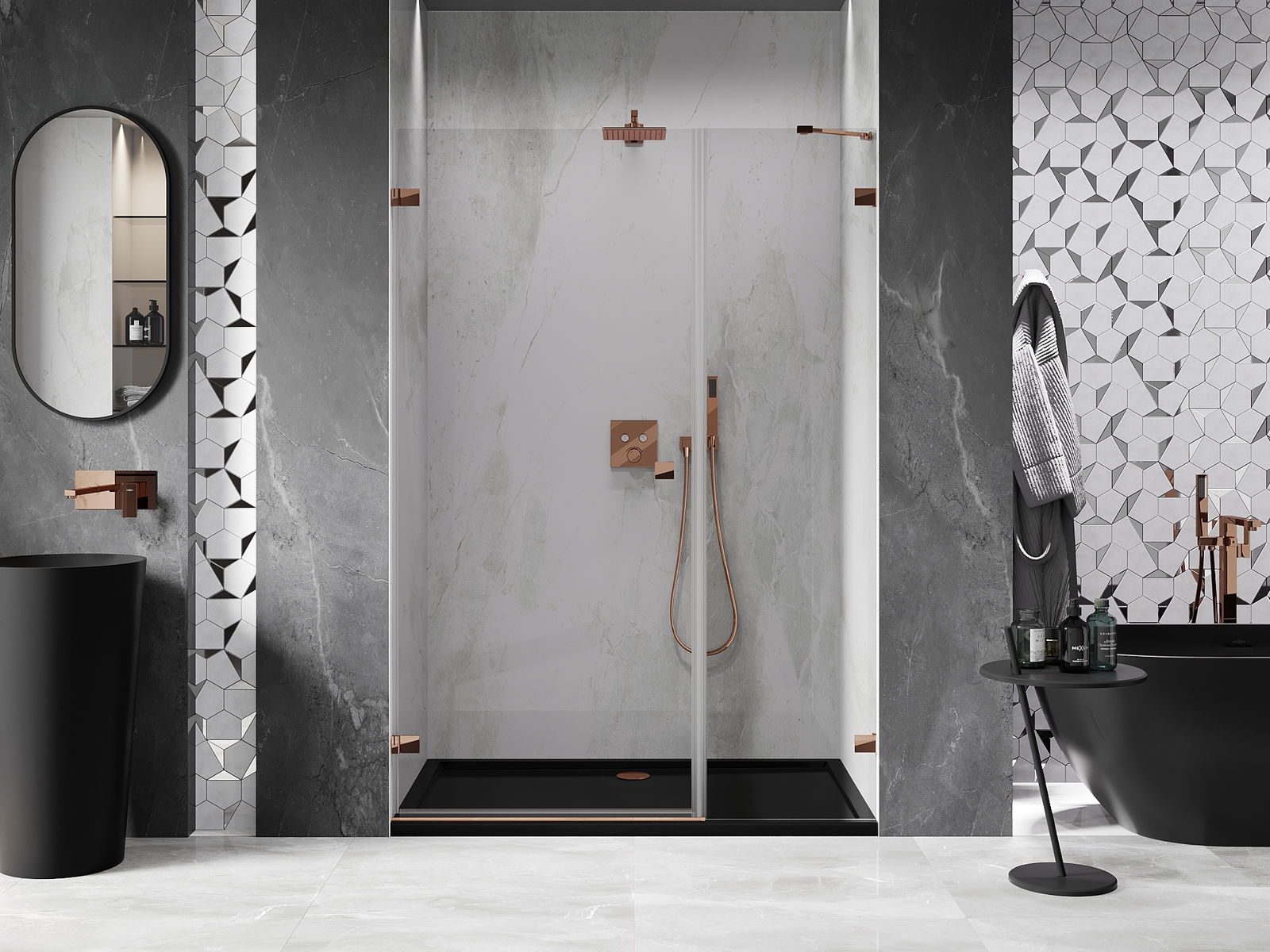 Mexen Lunar-B kairiosios pusės dušo durys 135 cm, skaidrios, rožinis auksas - 832S-135-050-60-00-L