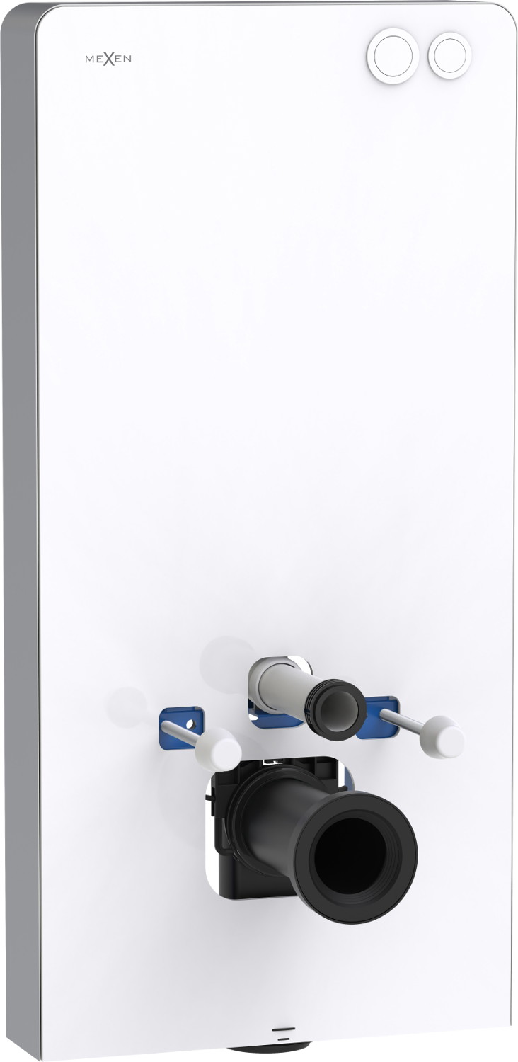 Mexen Tex Air G yra modernus antmontuojamas WC rėmas, jungiantis funkcionalumą su estetika. Aukštis 103 cm, plotis 50 cm ir storis 12 cm leidžia jam tinkamai derėti įvairiose erdvėse. Jo priekinė dalis iš grūdinto stiklo ir šoninė iš šlifuoto aliuminio prideda elegancijos. Integruotas plovimo mygtukas ir pneumatinė plovimo sistema užtikrina komfortą naudojant. Jis suderinamas su pakabinamais ir stovimais klozetais ir leidžia nustatyti vandens kiekį: 3/6 L.