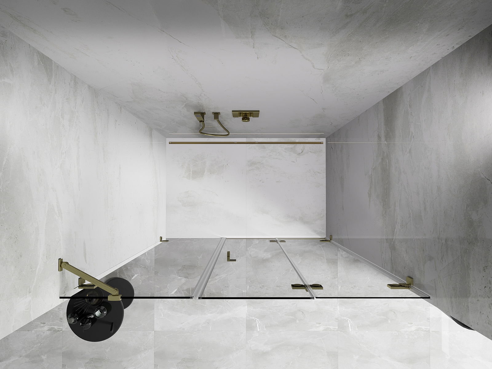 Mexen Lunar-F sulankstomos dešinės dušo durys 125 cm, skaidrios, auksinės matinės - 836S-125-050-55-00-P