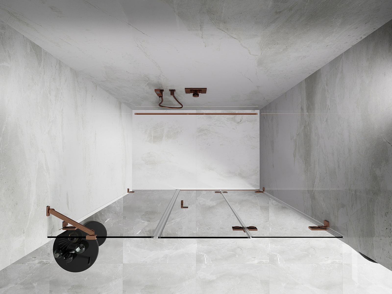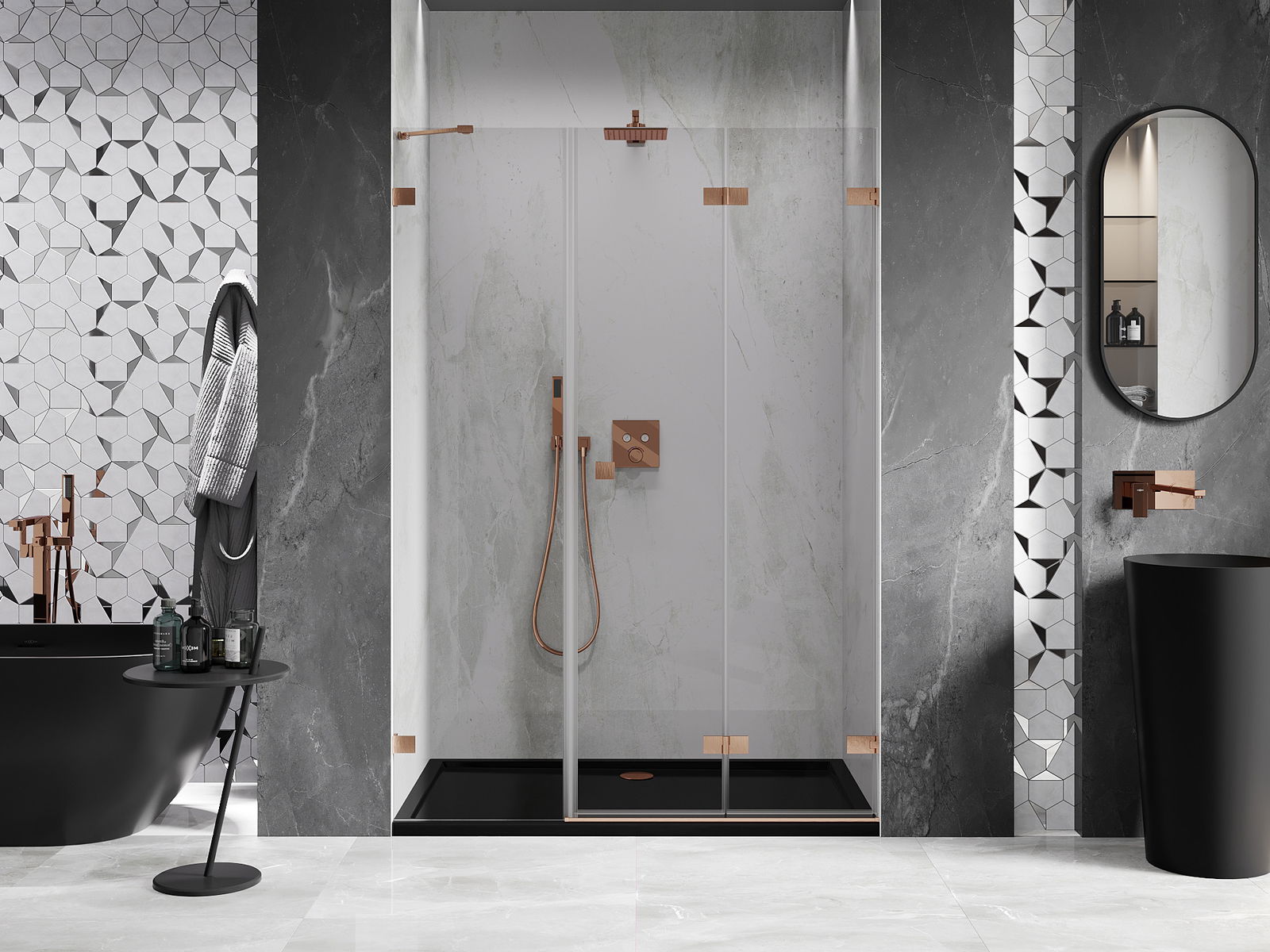 Mexen Lunar-F sulankstomos dešinės pusės dušo durys 130 cm, skaidrios, šepečiuota varis - 836S-130-050-65-00-P