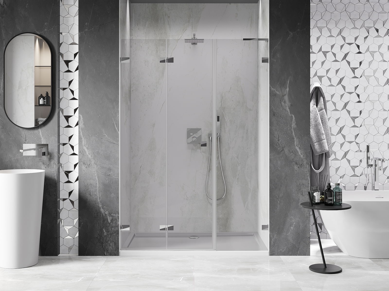 Galimybė sulenkti duris, tiek į išorę, tiek į vidų, leidžia gauti daugiau erdvės nenaudojant dušo. Tai yra idealus sprendimas mažesnėms vonios kambariams, maksimaliai išnaudojantis turimą plotą.