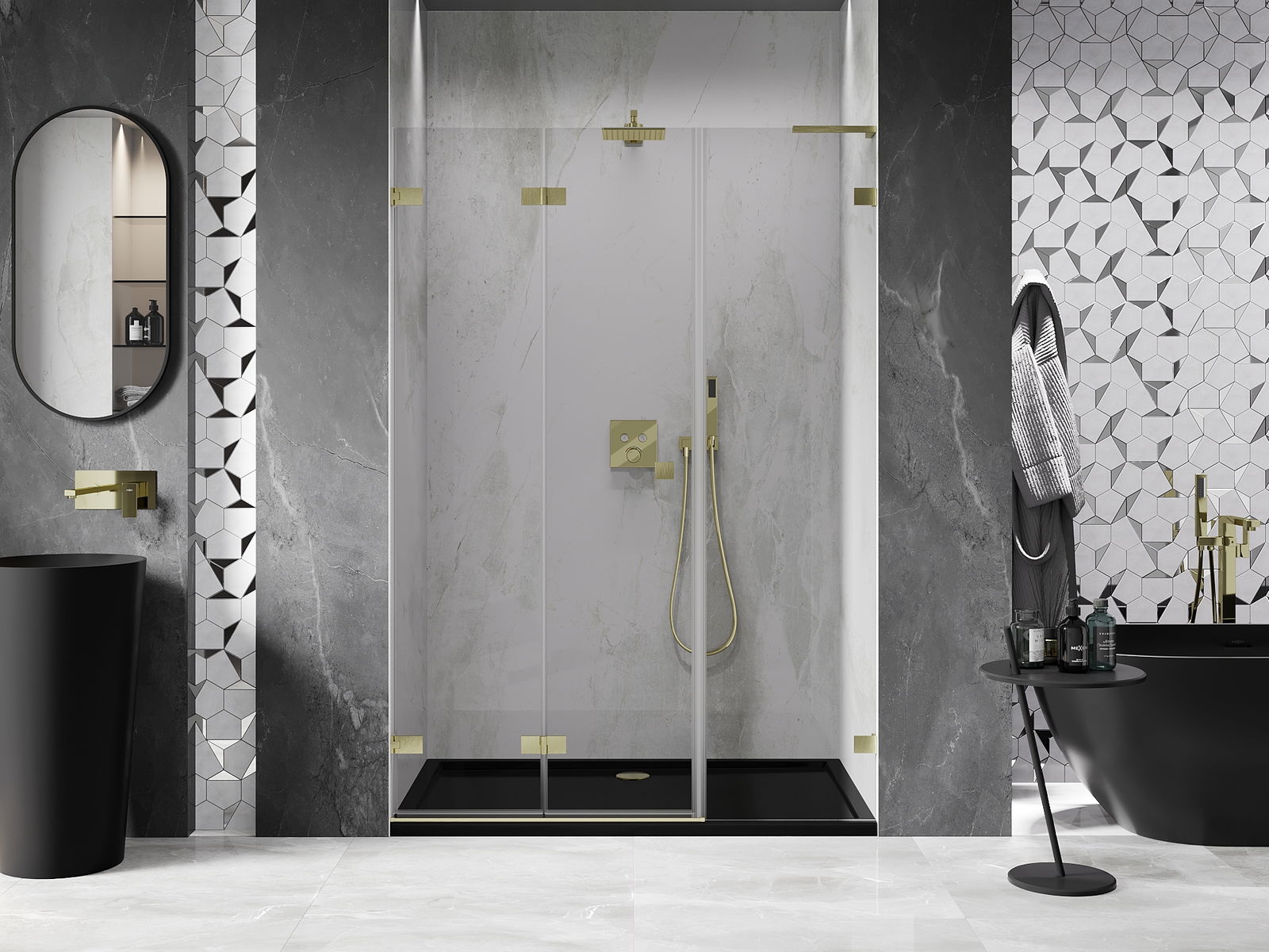 Mexen Lunar-F L sulankstomos kairinės dušo durys 125 cm, skaidrios, šlifuotas auksas - 836SL-125-050-55-00-L