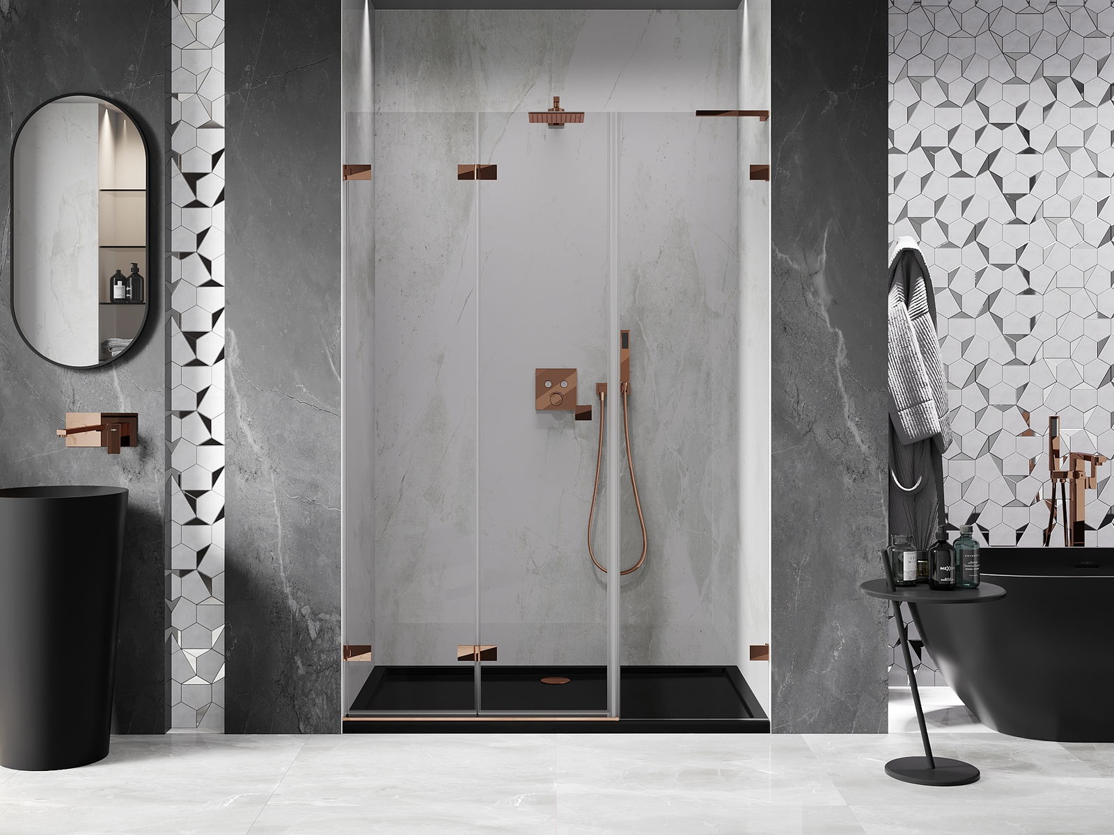 Mexen Lunar-F L sulankstomos dušo durys kairės 140 cm, permatomos, rožinis auksas - 836SL-140-050-60-00-L