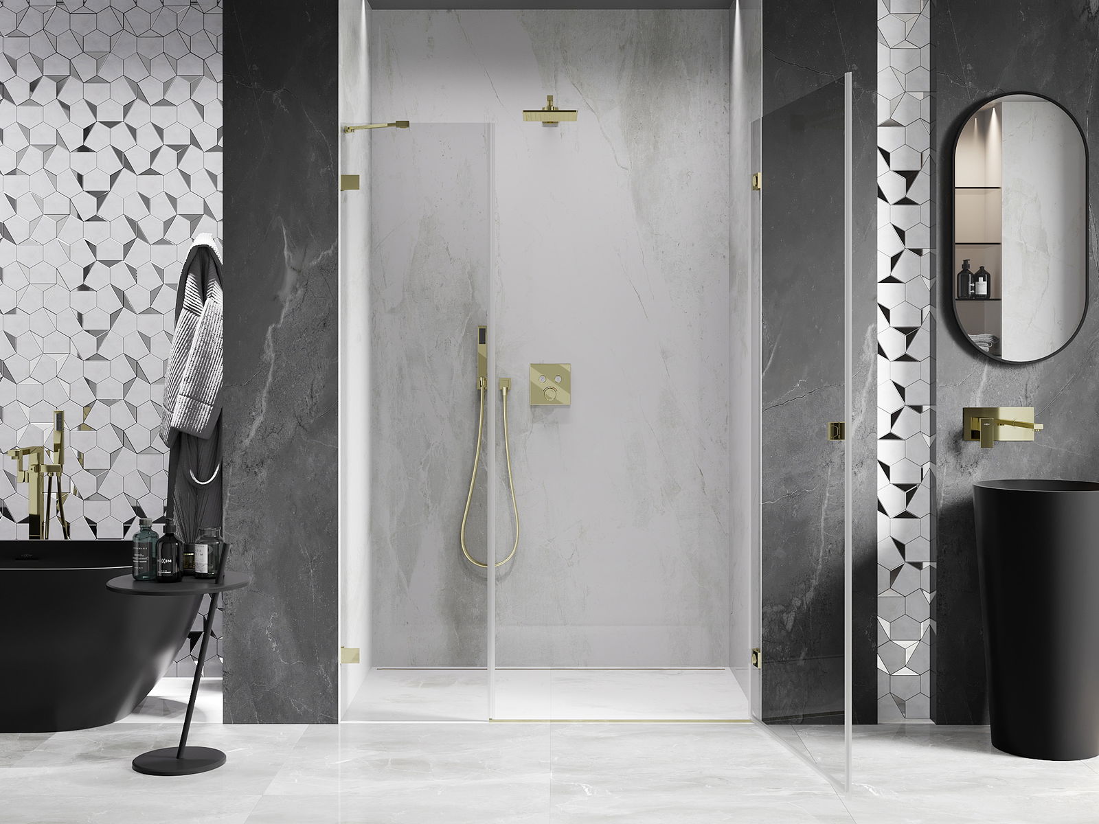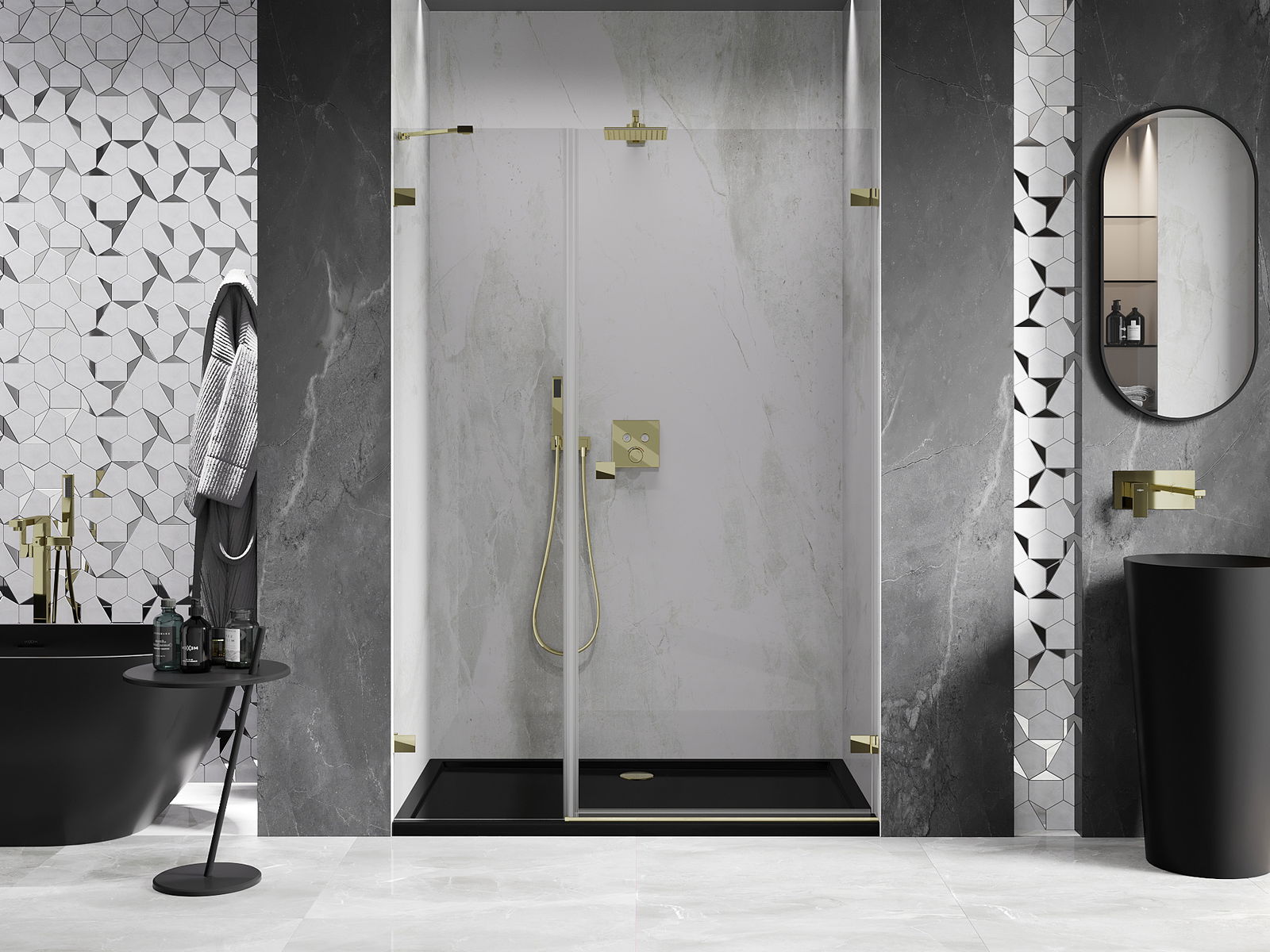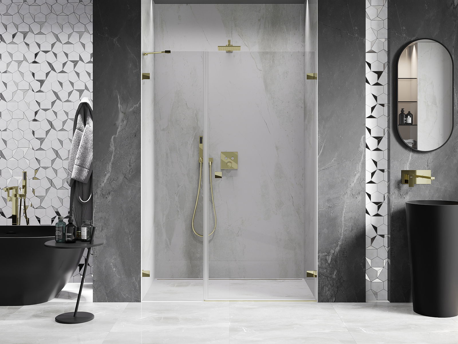 Mexen Lunar-B dešinės pusės dušo durys 135 cm, skaidrios, auksinės - 832S-135-050-50-00-P