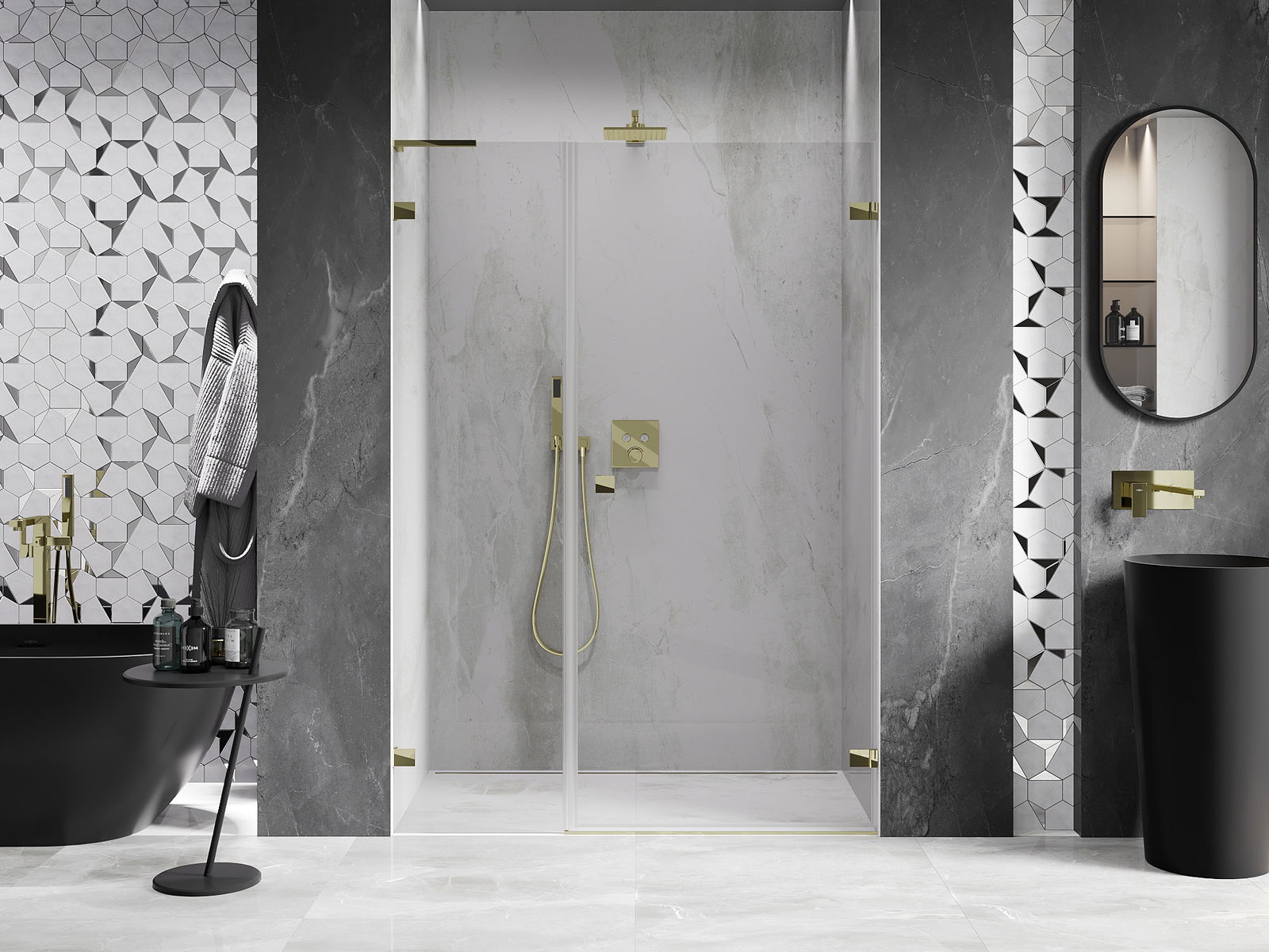 Mexen Lunar-B L atidaromos dešinės pusės dušo durys 115 cm, skaidrios, auksinės - 832SL-115-050-50-00-P