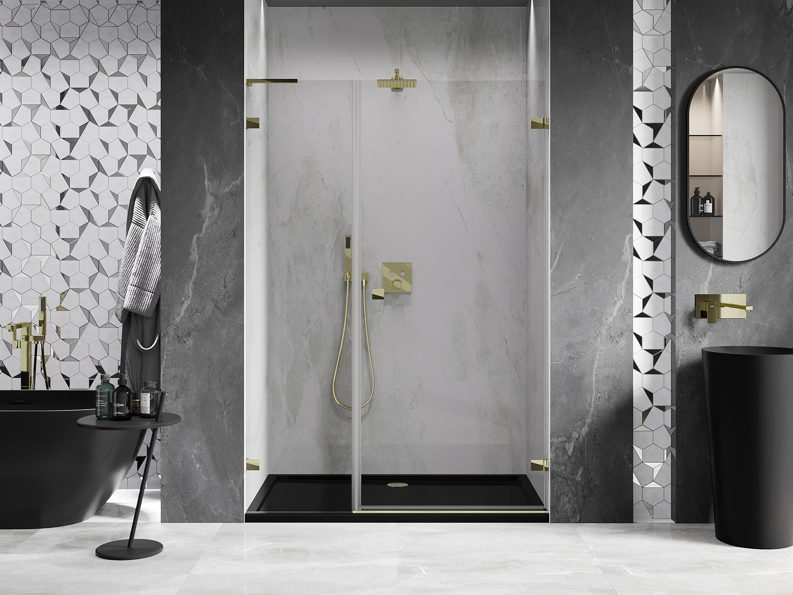Mexen Lunar-B L atveriamos dešinės pusės dušo durys 120 cm, skaidrios, auksinės - 832SL-120-050-50-00-P