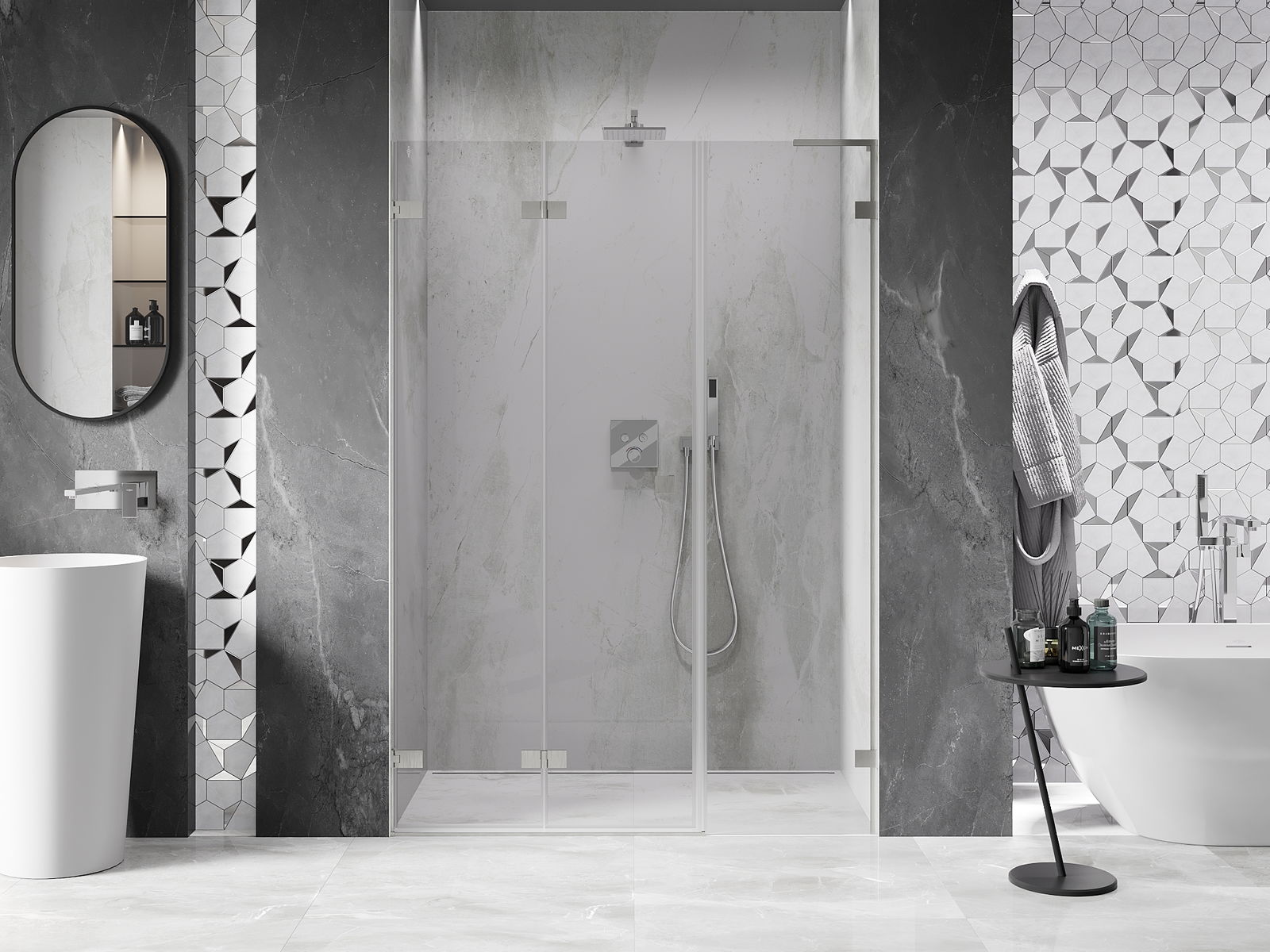 Galimybė sulenkti duris, tiek į išorę, tiek į vidų, leidžia gauti daugiau erdvės nenaudojant dušo. Tai yra idealus sprendimas mažesnėms vonios kambariams, maksimaliai išnaudojantis turimą plotą.