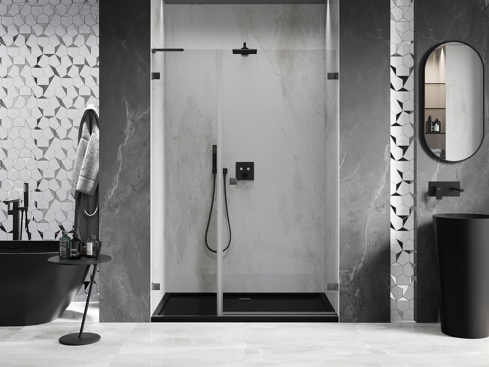 Produktą, atsižvelgiant į poreikius, galima sumontuoti tiek ant dušo padėklo, tiek tiesiogiai ant grindų. Universalus montavimo būdas leidžia pritaikyti produktą įvairių tipų vonios kambariams ir erdvės konfigūracijoms.