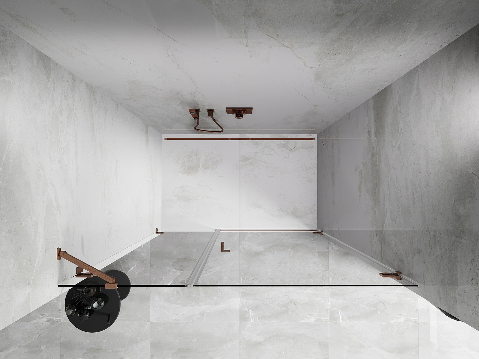 Mexen Lunar-B dešinės pusės stumdomos dušo durys 140 cm, skaidrios, šepečiuota vario spalva - 832S-140-050-65-00-P