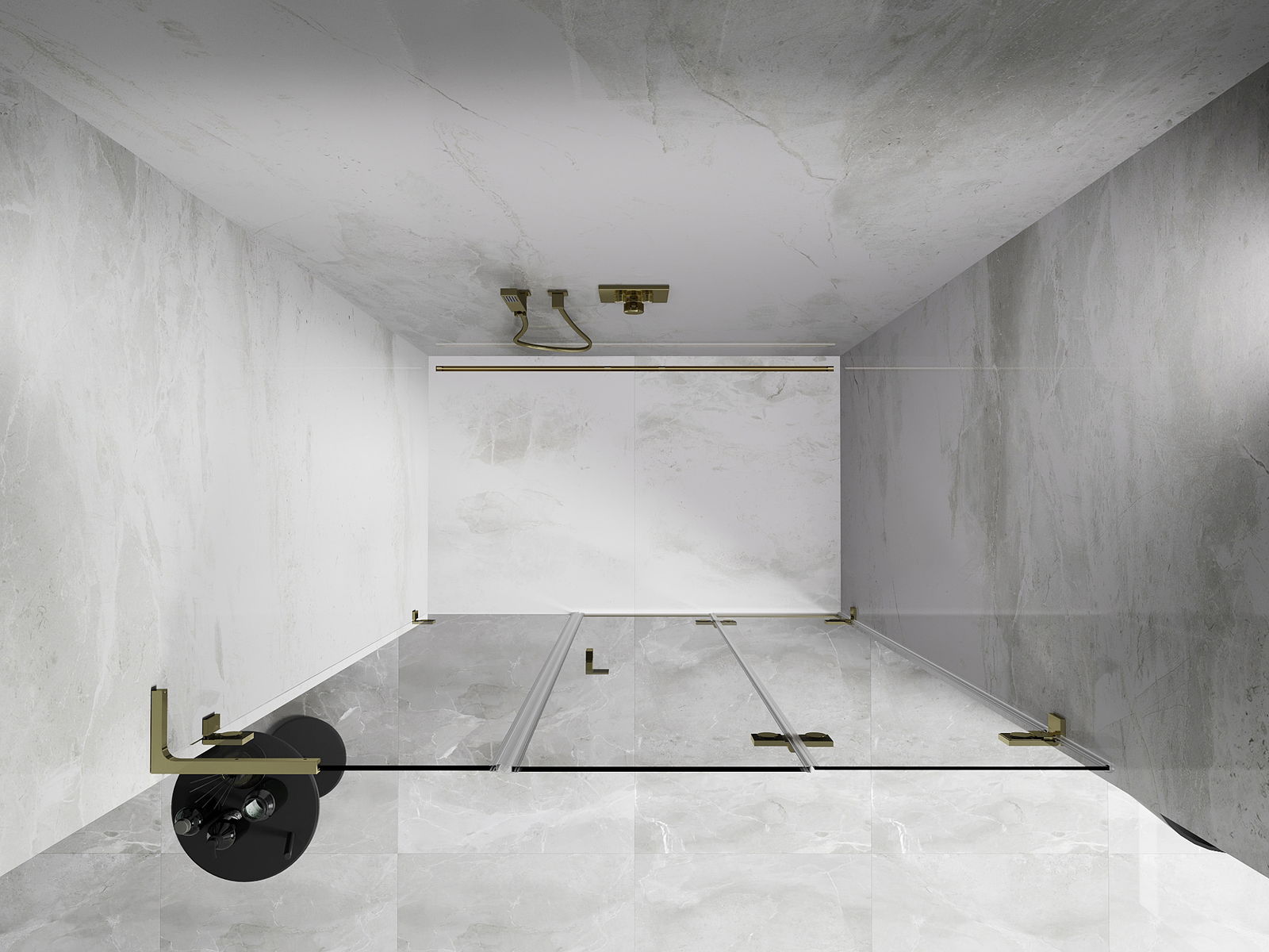 Mexen Lunar-F L sulankstomosios dešinės pusės dušo durys 130 cm, skaidrios, auksinės - 836SL-130-050-50-00-P