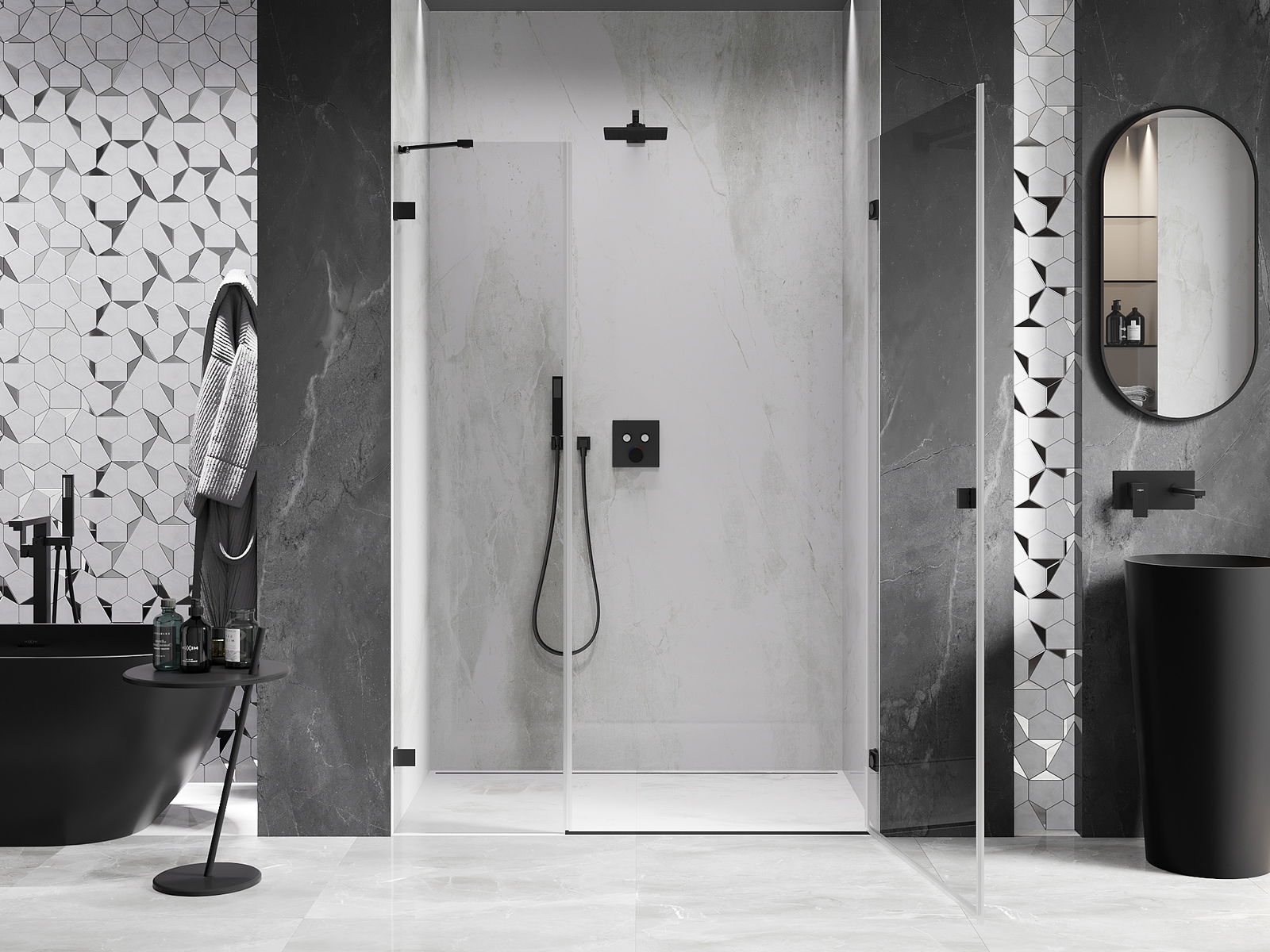 Mexen Lunar-B dešinės pusės dušo durys 125 cm, skaidrios, juodos - 832S-125-050-70-00-P
