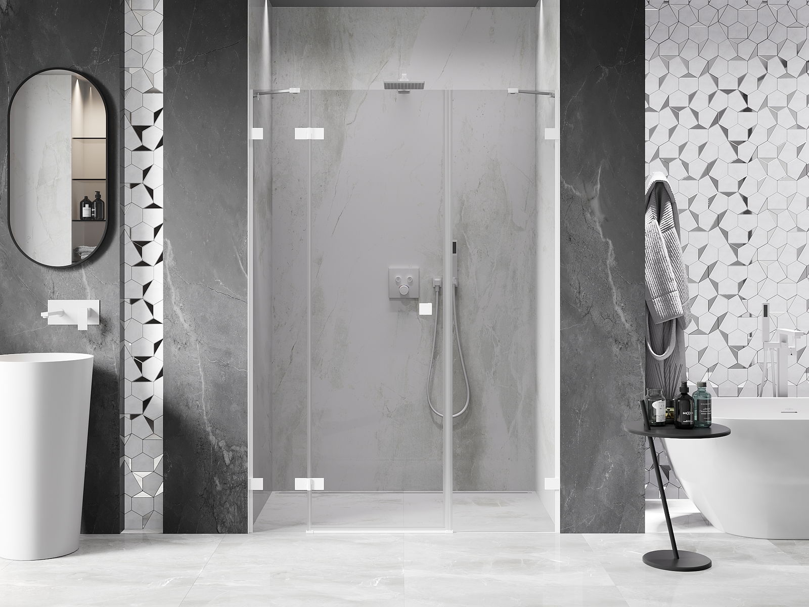 Produktą, atsižvelgiant į poreikius, galima sumontuoti tiek ant dušo padėklo, tiek tiesiogiai ant grindų. Universalus montavimo būdas leidžia pritaikyti produktą įvairių tipų vonios kambariams ir erdvės konfigūracijoms.