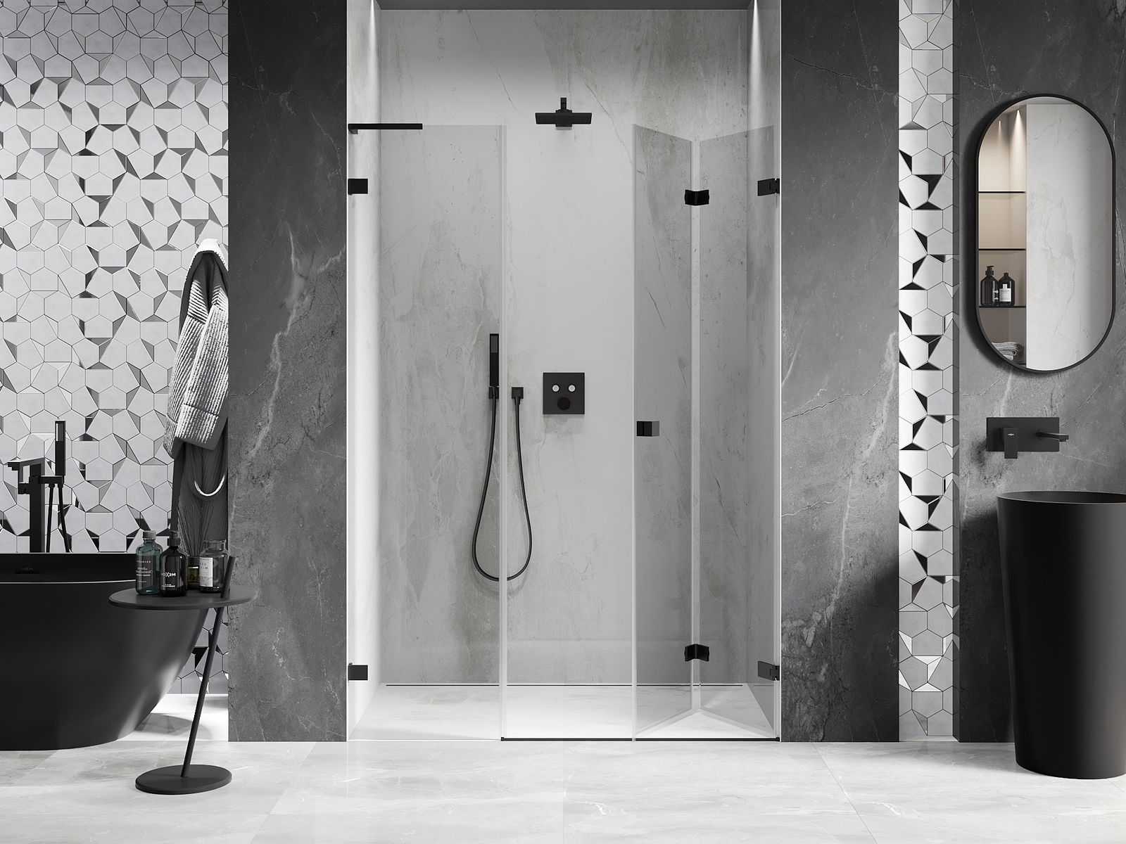 Mexen Lunar-F L lankstomos dušo durys dešinės 150 cm, permatomos, juodos - 836SL-150-050-70-00-P