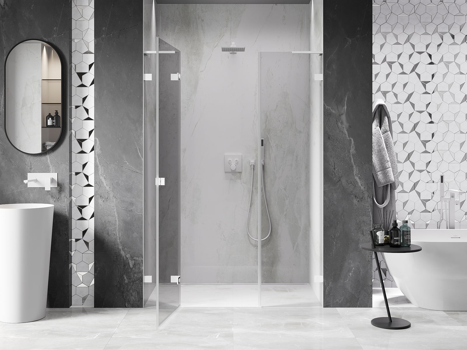 Produktą, atsižvelgiant į poreikius, galima sumontuoti tiek ant dušo padėklo, tiek tiesiogiai ant grindų. Universalus montavimo būdas leidžia pritaikyti produktą įvairių tipų vonios kambariams ir erdvės konfigūracijoms.