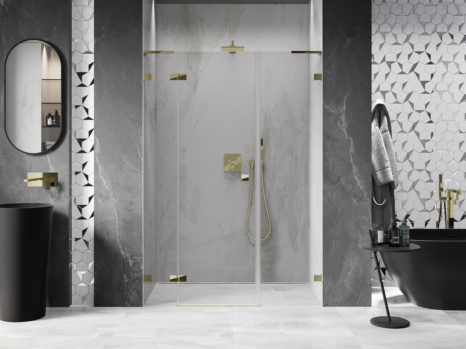 Spaustukai ir vyriai pagaminti iš labai patvaraus žalvario, papildomai sukuriantys lygią stiklo plokštumą. Tai puikus pasirinkimas, jungiantis eleganciją, patvarumą ir šiuolaikinį dizainą. Tokie sprendimai prideda dušo estetikai ir tuo pačiu palengvina švaros palaikymą.
