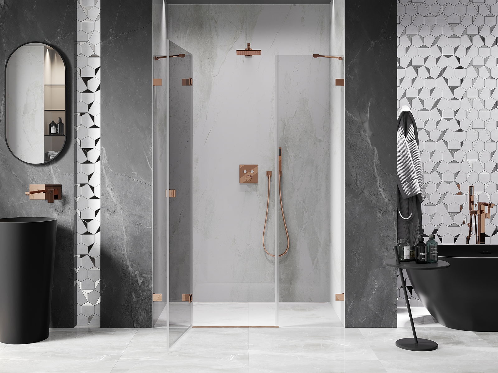 Spaustukai ir vyriai pagaminti iš labai patvaraus žalvario, papildomai sukuriantys lygią stiklo plokštumą. Tai puikus pasirinkimas, jungiantis eleganciją, patvarumą ir šiuolaikinį dizainą. Tokie sprendimai prideda dušo estetikai ir tuo pačiu palengvina švaros palaikymą.