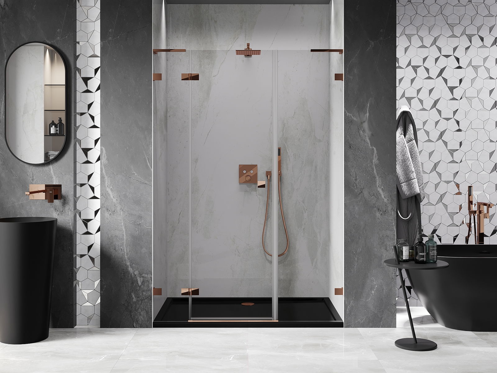 Mexen Lunar L kairiosios pusės dušo durys, atsiveriančios į išorę, 120 cm, skaidrios, rožinis auksas - 834SL-120-050-60-00-L