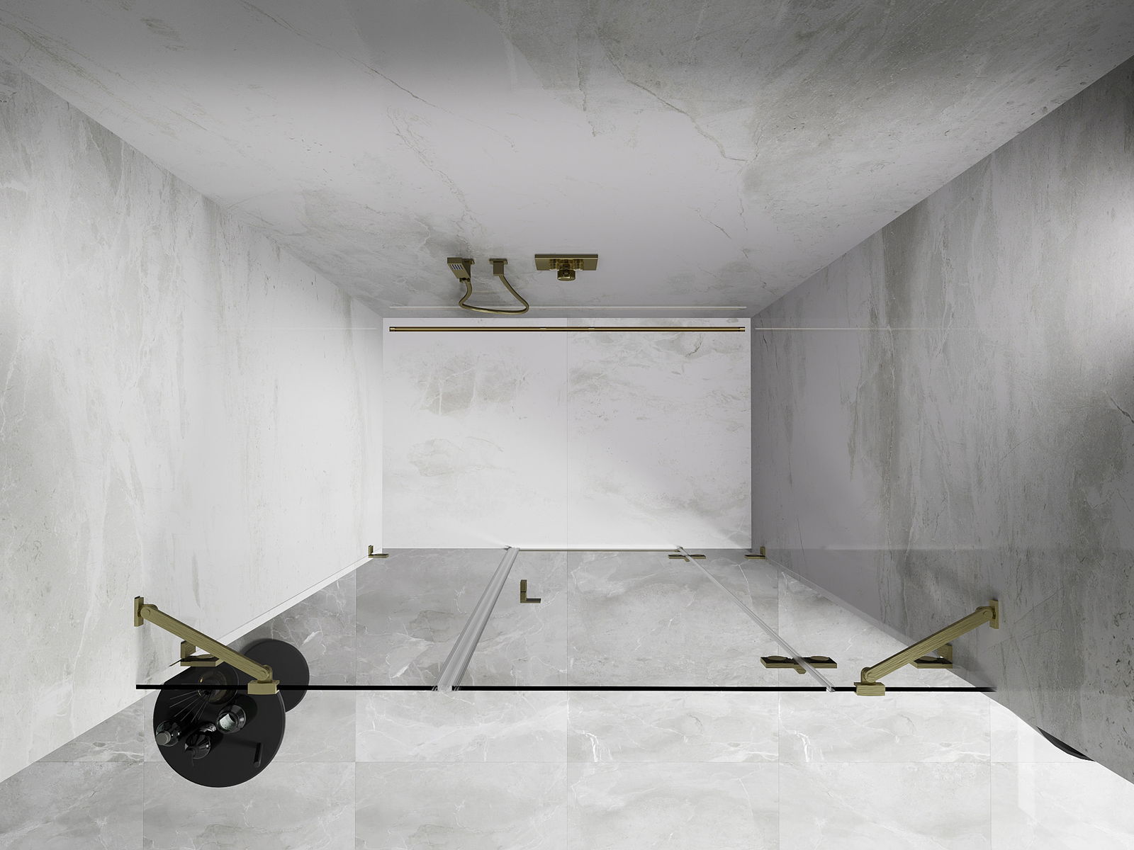 Mexen Lunar dešinės pusės varstomos dušo durys, 145 cm, skaidrios, šlifuotas auksas - 834S-145-050-55-00-P