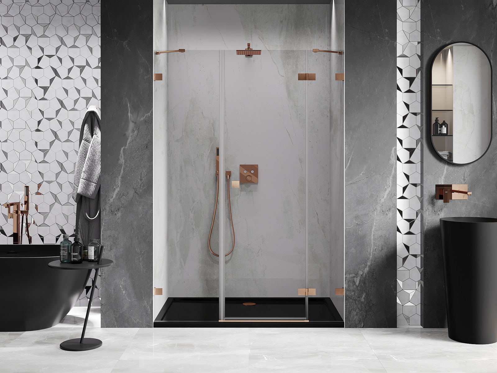 Mexen Lunar dušo durys, atsidarančios dešinėje, 150 cm, permatomos, šlifuota varis - 834S-150-050-65-00-P