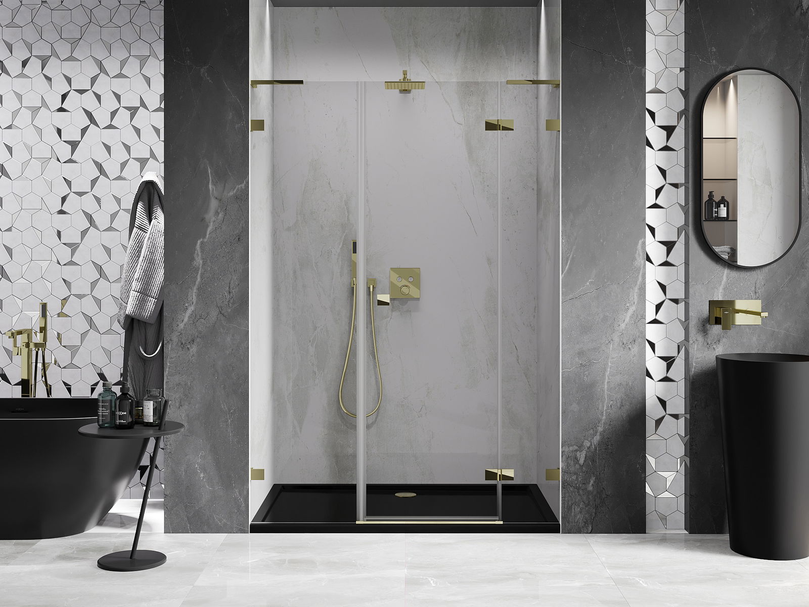 Mexen Lunar L dešinės pusės dušo durys, skaidrios, auksinės - 834SL-120-050-50-00-P