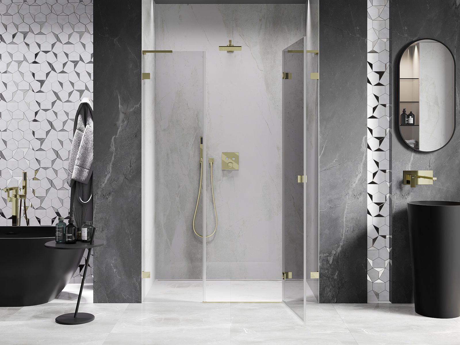 Mexen Lunar L dušo durys dešinės pusės 130 cm, skaidrios, auksinės - 834SL-130-050-50-00-P
