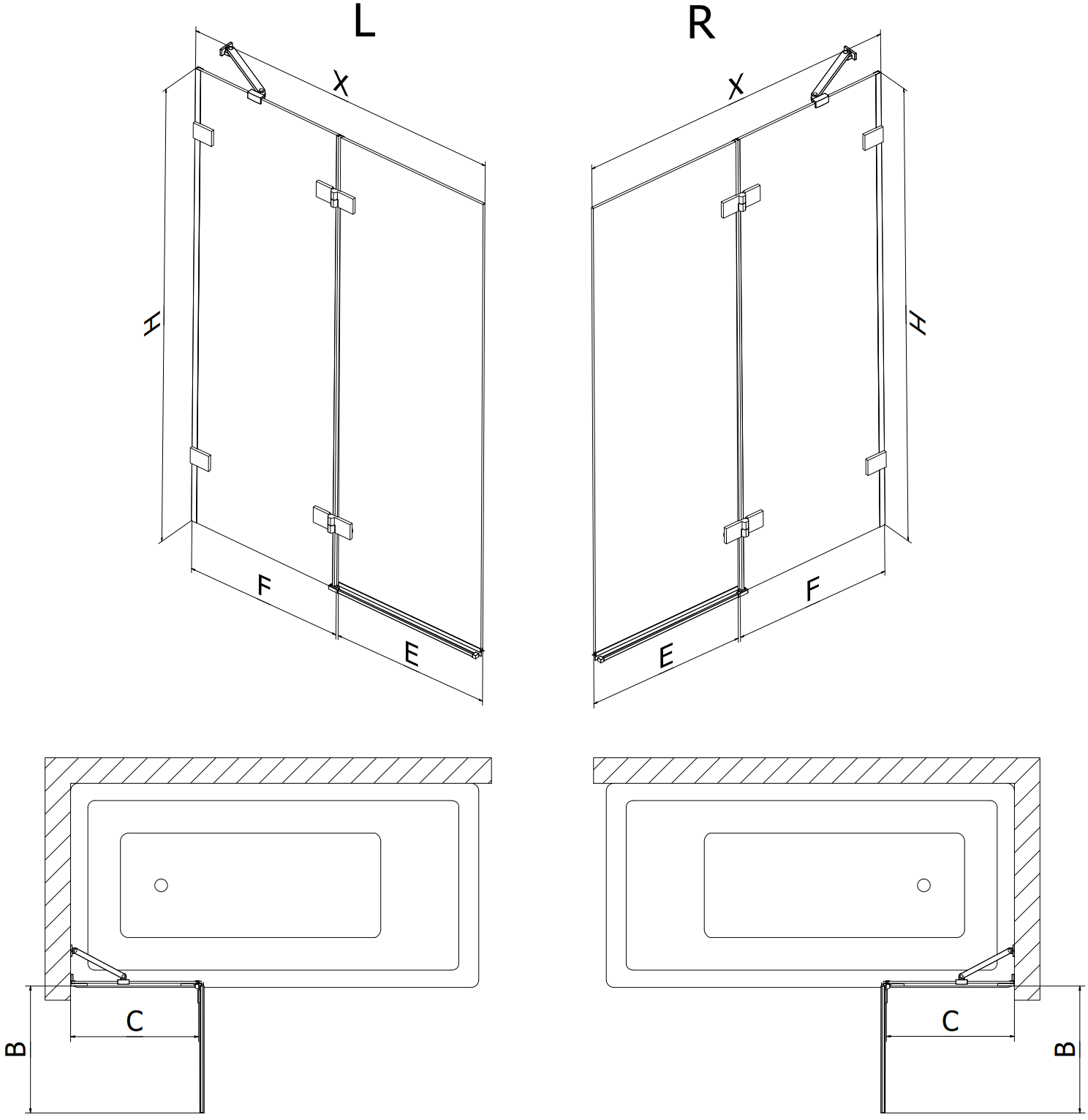 Ekranas pagamintas iš dviejų durų, kurias galima sulankstyti. Toks sprendimas leidžia sutaupyti daugiau vietos vonios kambaryje ir leidžia laisvai naudotis likusia erdve, kai nesinaudojame maudymosi zona.