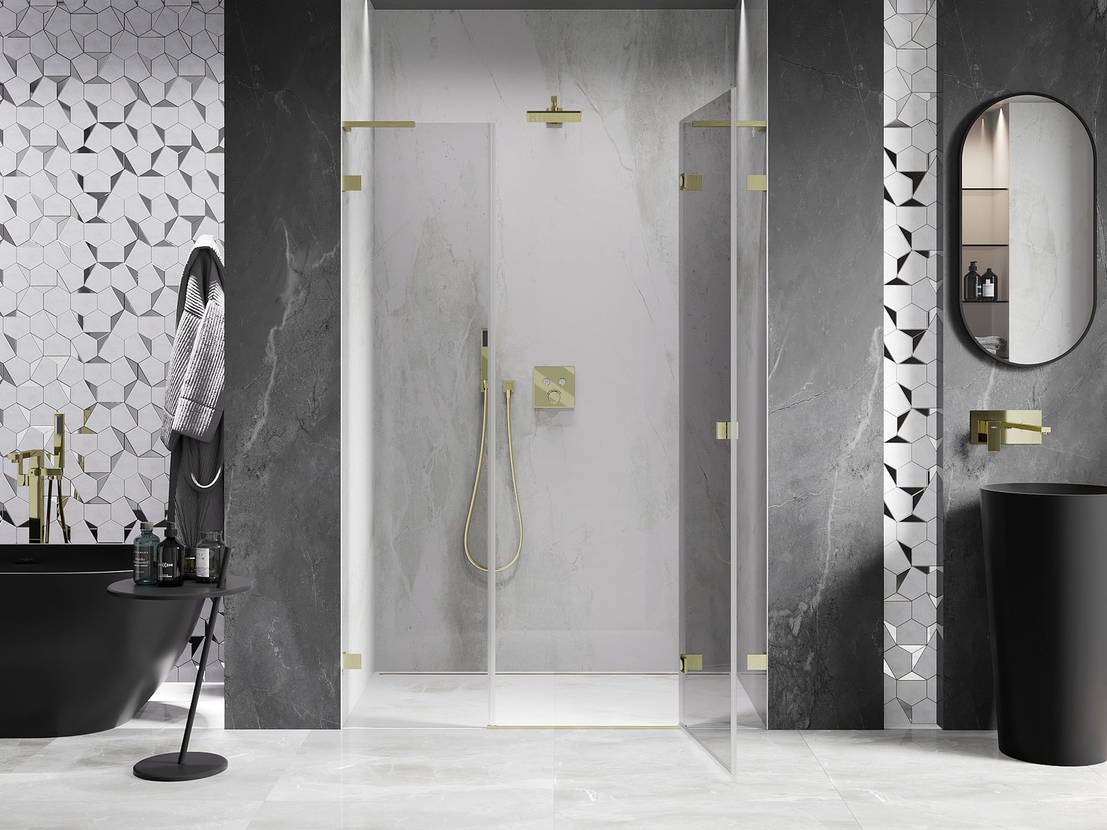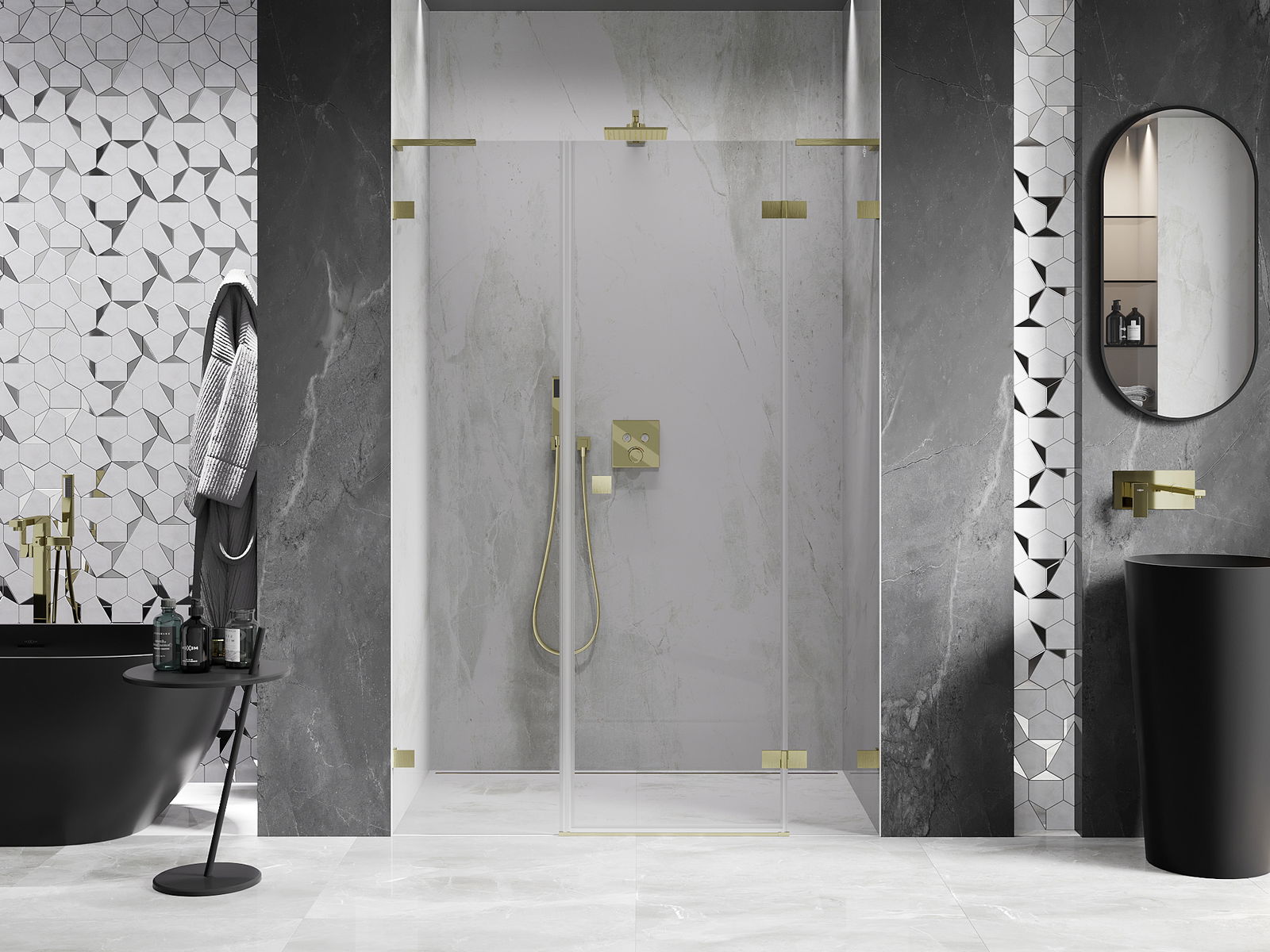 Mexen Lunar L dešinės pusės atverčiamos dušo durys 160 cm, skaidrios, šlifuotos auksinės - 834SL-160-050-55-00-P