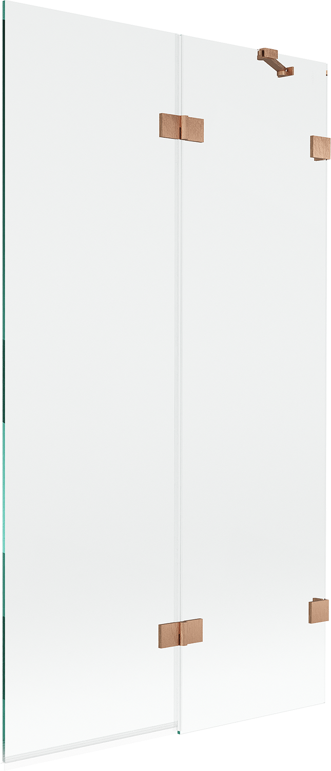 Mexen Lunar dešinioji dviejų dalių vonios dušo pertvara 100 x 150 cm, skaidri, šlifuota varis - 897-100-100-65-00-P