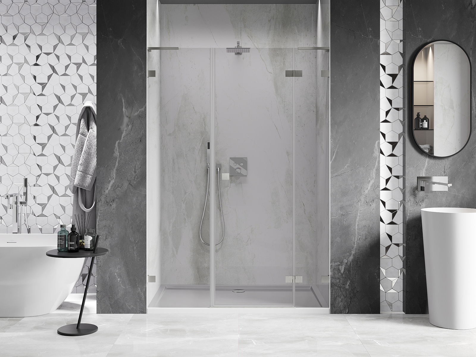 Mexen Lunar L dešinės pusės dušo durys, atidaromas, 130 cm, skaidrios, šlifuotas nikelis - 834SL-130-050-97-00-P