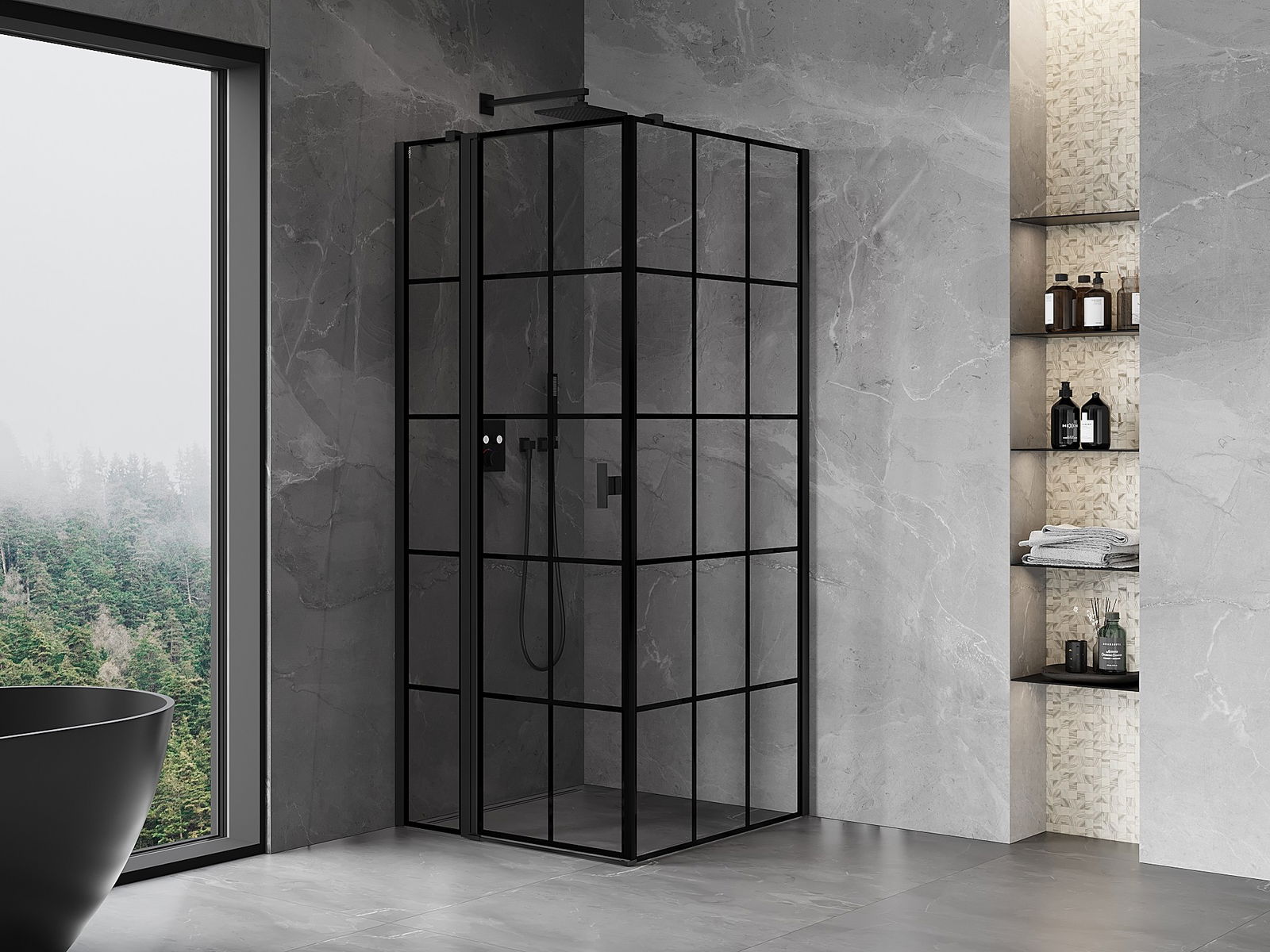 Mexen Mist T dušo kabina varstoma kairė 90 x 90 cm, juodas tinklelis, juoda - 8A4T-090-090-70-77-L