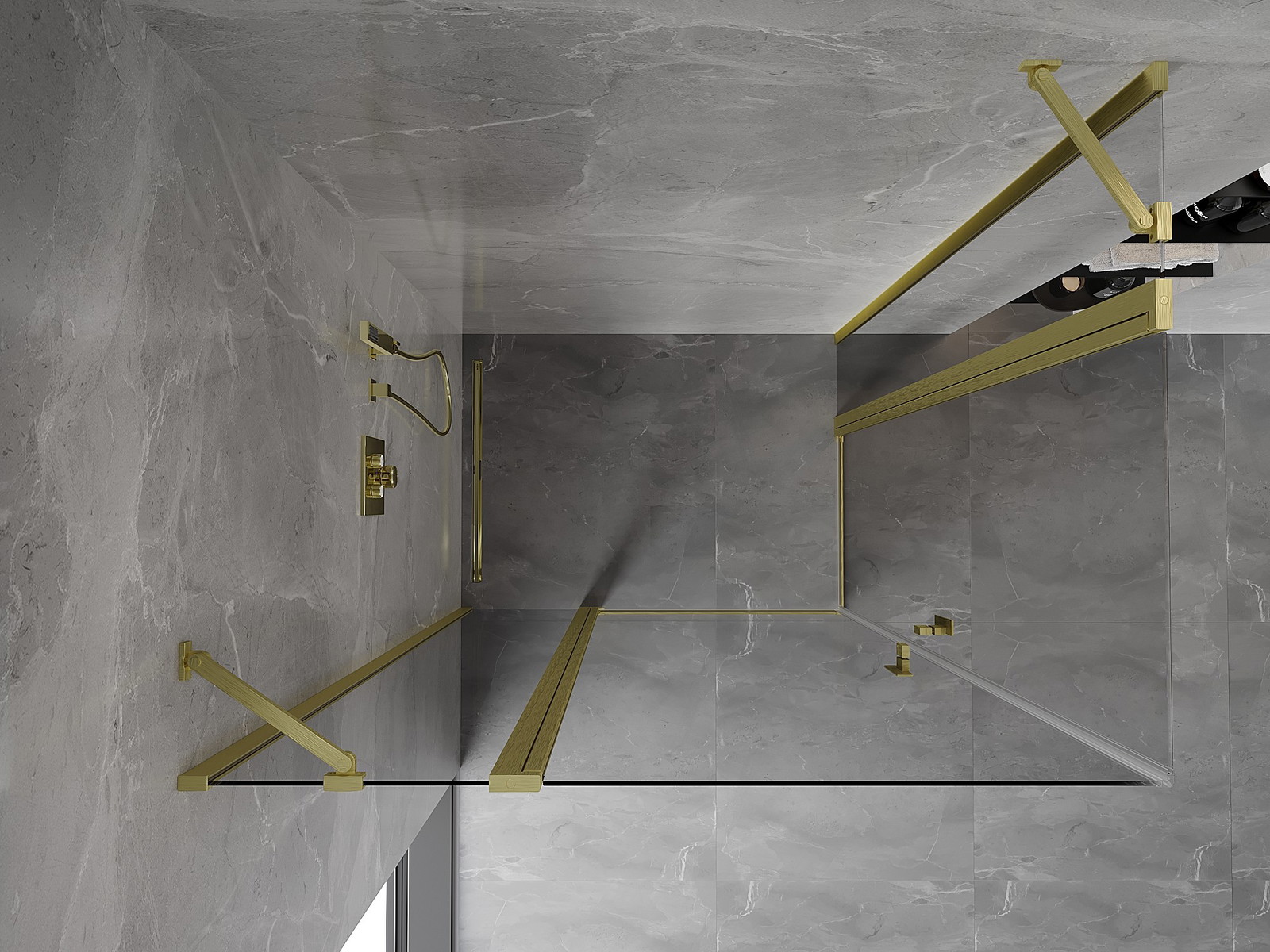 Mexen Mist Dviguba dušo kabina su atveriamomis durimis 115 x 95 cm, skaidri, matinė aukso spalva - 8A4-115-095-55-00