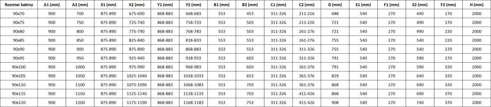 Dušo kabinos, durys ir sienelės yra standartiškai pritaikytos montuoti ant nustatytų matmenų dušo padėklų. Būtent šie matmenys nurodomi gaminio pavadinime arba aprašyme. Tačiau atkreipkite dėmesį, kad faktiniai elementų matmenys gali šiek tiek skirtis nuo vardinių verčių. Planuojant montuoti tiesiai ant grindų, rekomenduojama atidžiai patikrinti išorinius matmenis ir elementų išdėstymą pagal techninį brėžinį.