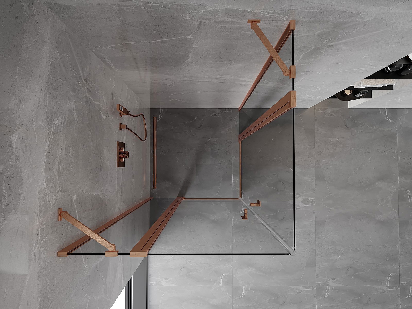 Mexen Mist Duo dušas kabina su atveriamomis durimis 95 x 95 cm, skaidri, šlifuotas varis - 8A4-095-095-65-00