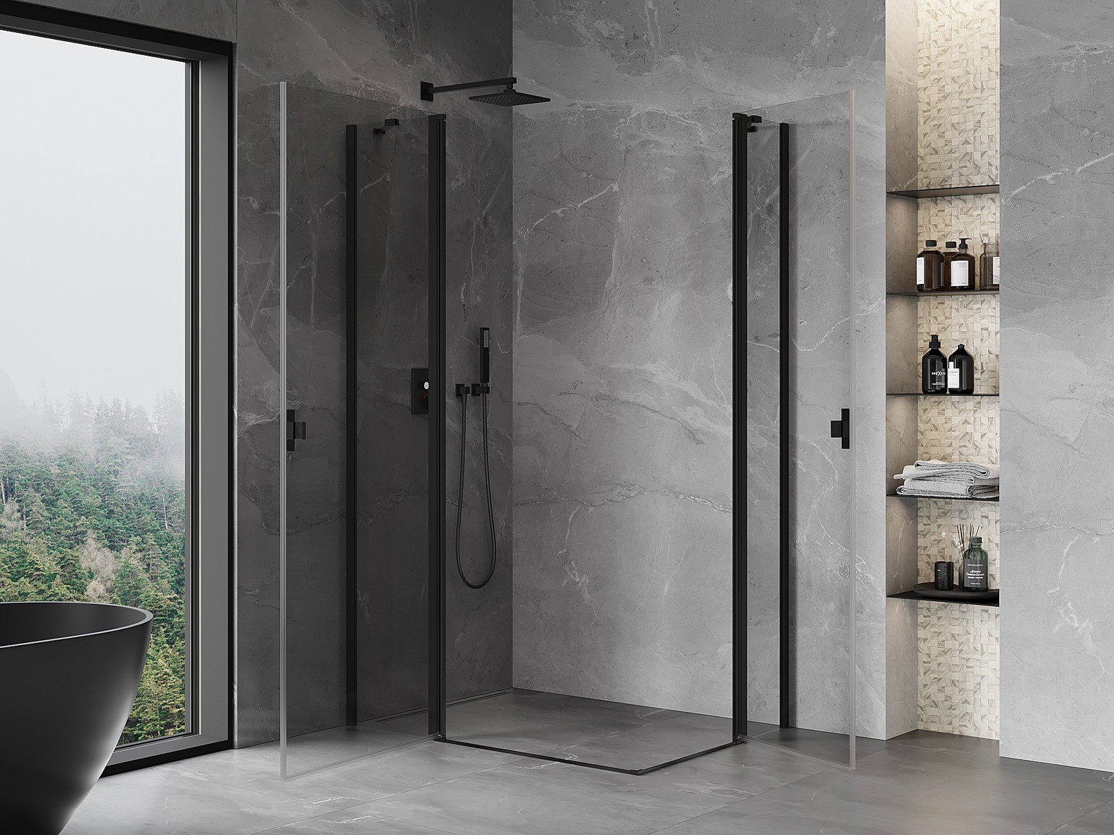 Mexen Mist Dviguba dušo kabina su varstomomis durimis 110 x 100 cm, permatoma, juoda - 8A4-110-100-70-00