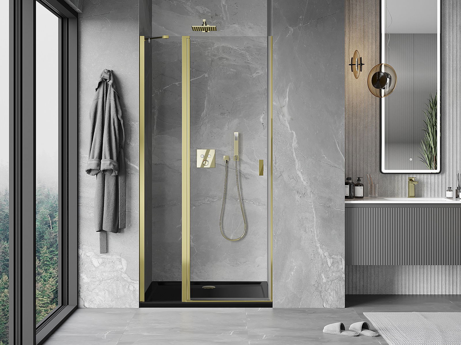 Mexen Mist atveriamos dušo durys 100 cm, skaidrios, auksinės - 8A4-100-000-50-00