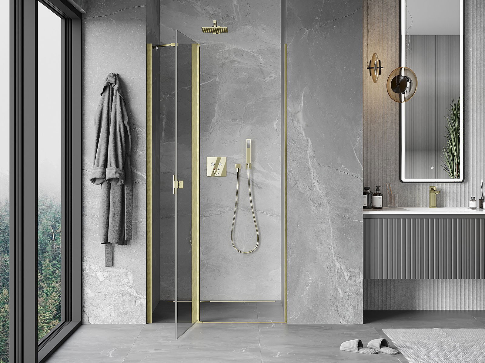 Mexen Mist atveriamos dušo durys 70 cm, permatomos, auksinės matinės - 8A4-070-000-55-00