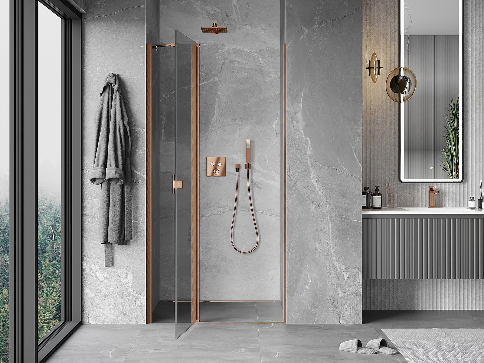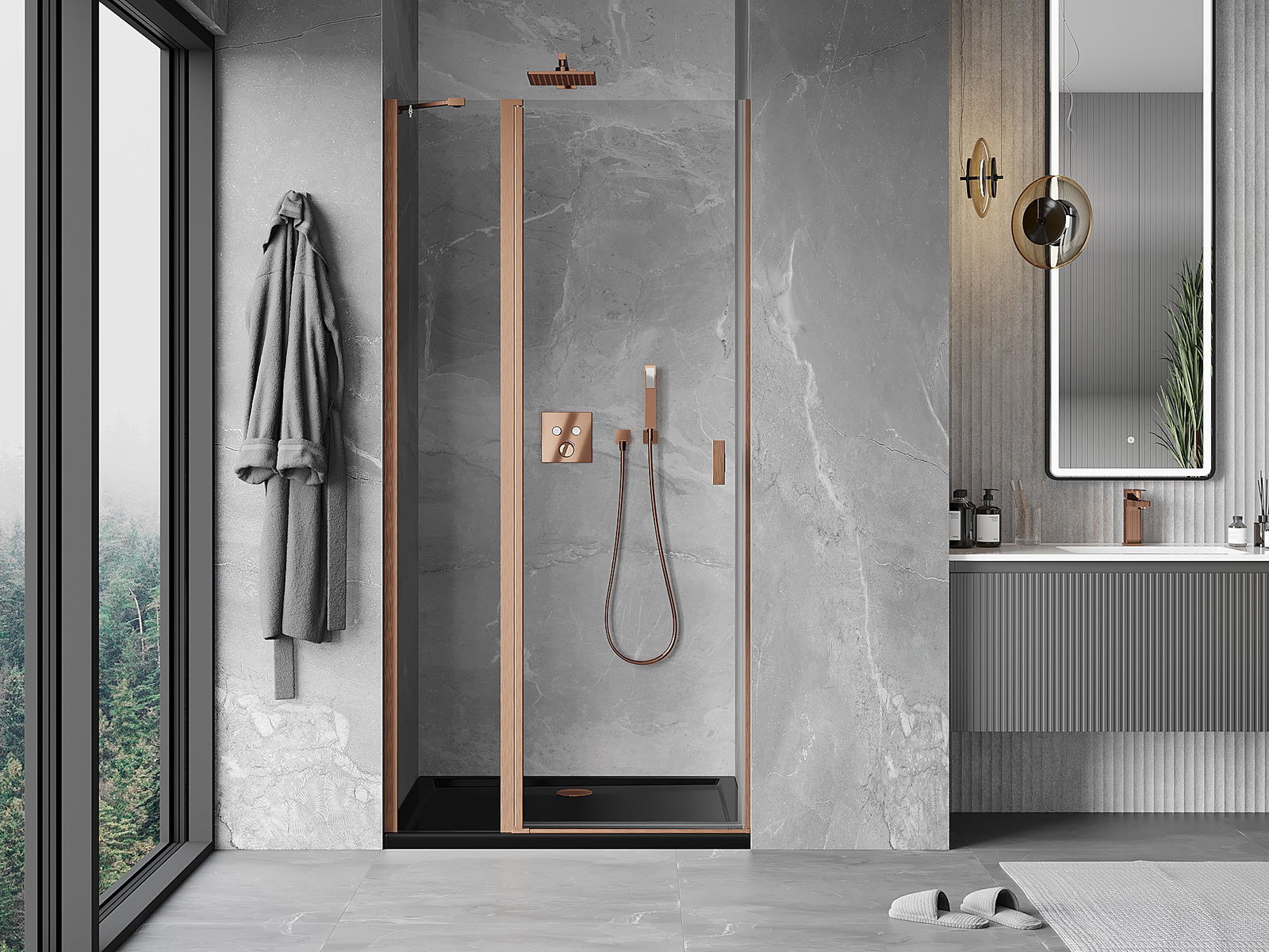 Mexen Mist atveriamos dušo durys 80 cm, skaidrios, šlifuotas varis - 8A4-080-000-65-00
