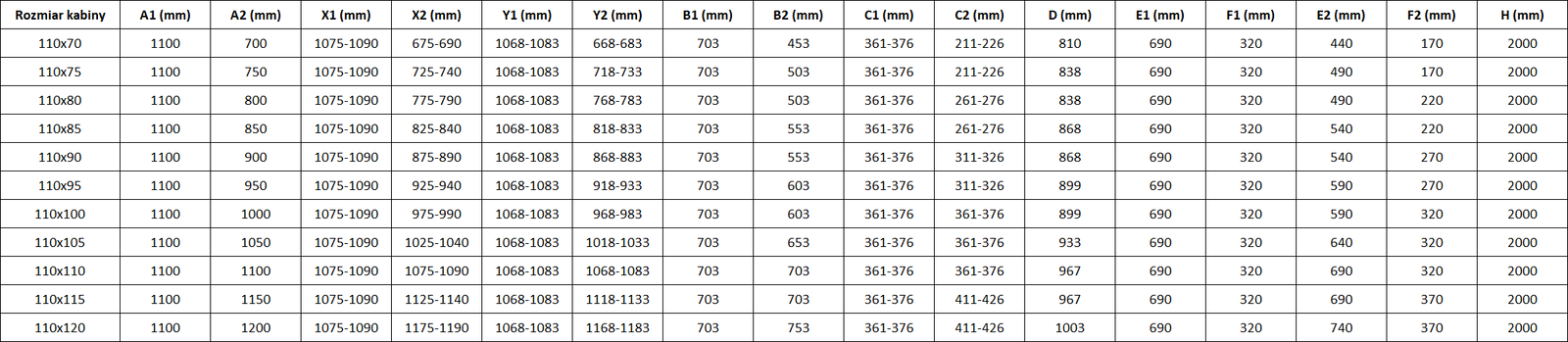 Dušo kabinos, durys ir sienelės yra standartiškai pritaikytos montuoti ant nustatytų matmenų dušo padėklų. Būtent šie matmenys nurodomi gaminio pavadinime arba aprašyme. Tačiau atkreipkite dėmesį, kad faktiniai elementų matmenys gali šiek tiek skirtis nuo vardinių verčių. Planuojant montuoti tiesiai ant grindų, rekomenduojama atidžiai patikrinti išorinius matmenis ir elementų išdėstymą pagal techninį brėžinį.