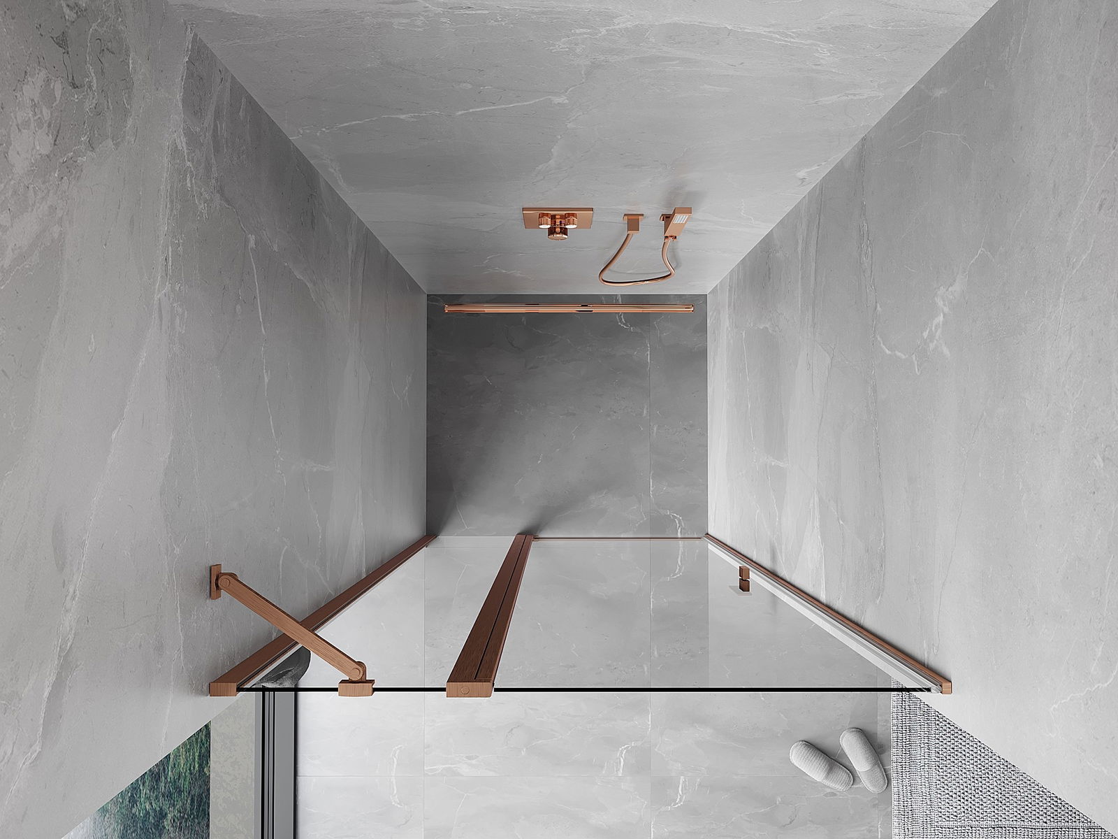 Mexen Mist atveriamos dušo durys 120 cm, skaidrios, šlifuotas varis - 8A4-120-000-65-00
