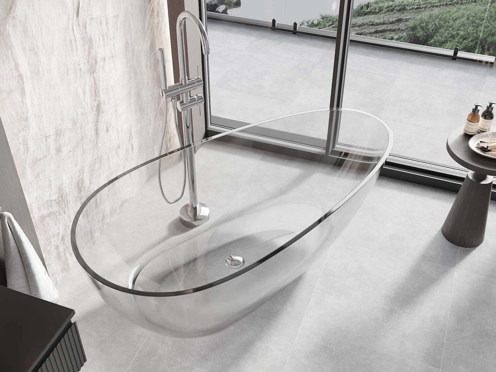 Tai moderni medžiaga, derinanti elegantišką išvaizdą su dideliu patvarumu. Ji atspari mechaniniams pažeidimams, lengvai valoma ir maloni liesti. Permatoma forma ir plonas vonios kraštas suteikia jai lengvumo ir unikalumo, sukuriant įspūdingą akcentą vonios kambario interjere.