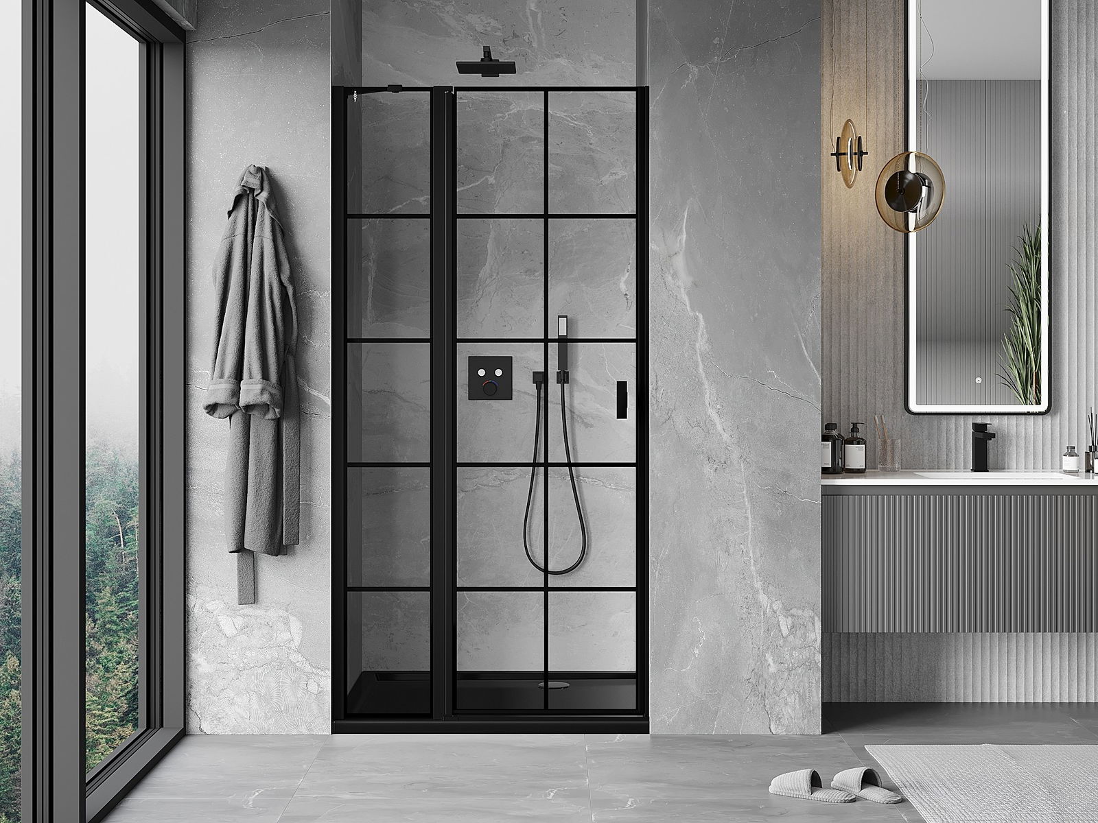 Mexen Mist kairios durys dušo kabinos 80 cm, juodai langeliai, juoda - 8A4-080-000-70-77-L