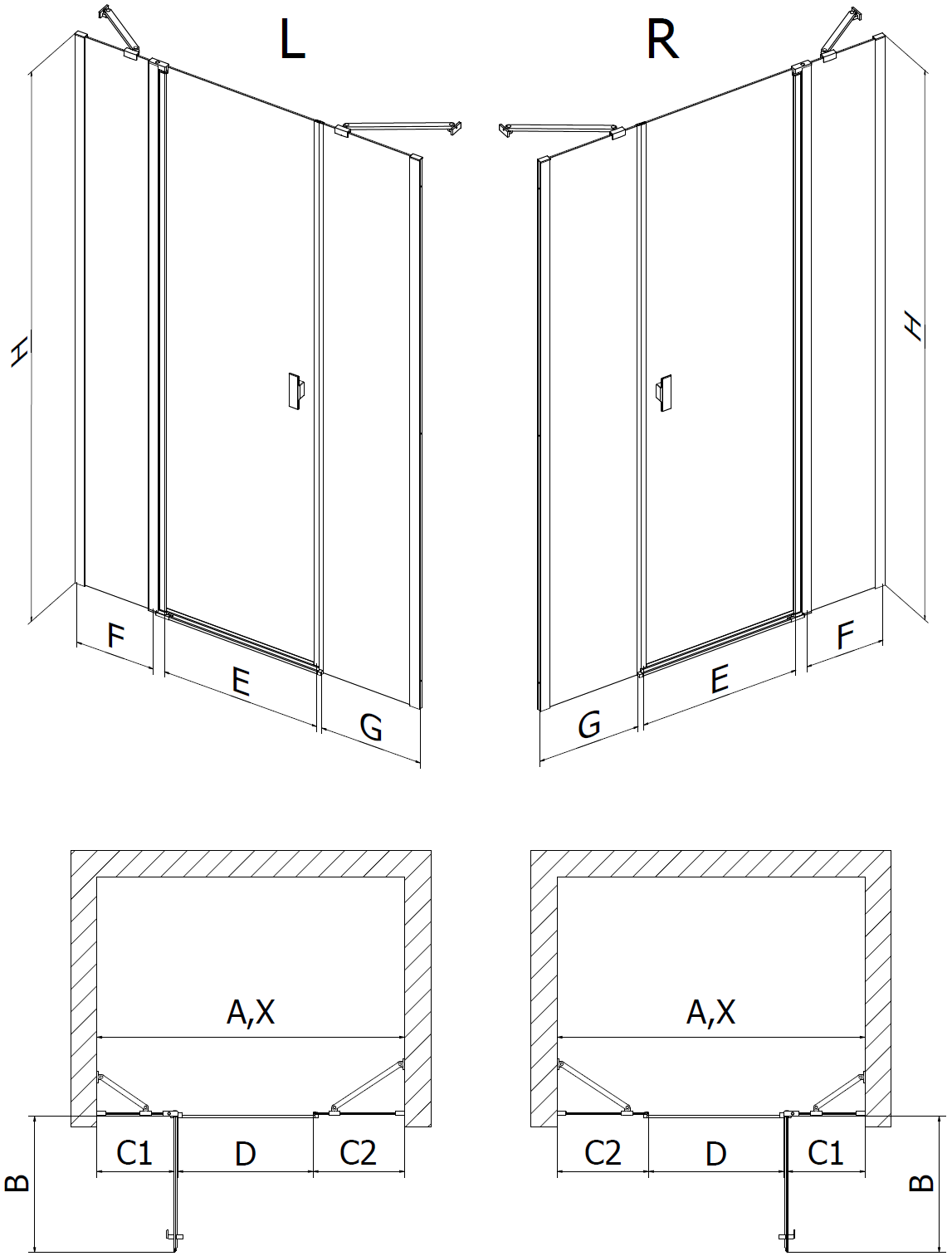 Dėl universalaus tvirtinimo sistemos, dušo durys gali būti sumontuotos dešinėje arba kairėje pusėje, atsižvelgiant į poreikius. Tai leidžia lengvai suprojektuoti dušą, pritaikytą vonios kambario erdvei.