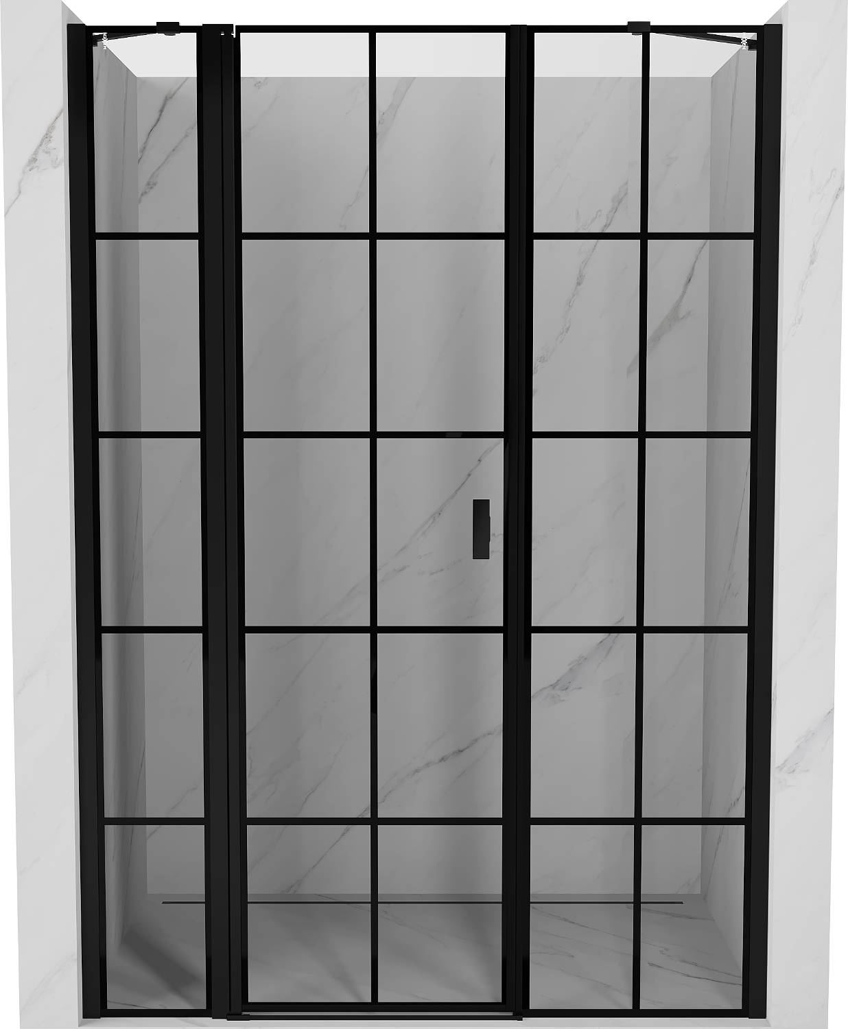 Mexen Mist kairės pusės dušo durys su juodu tinkleliu, juodos - 155 cm - 8A4-155-001-70-77-L