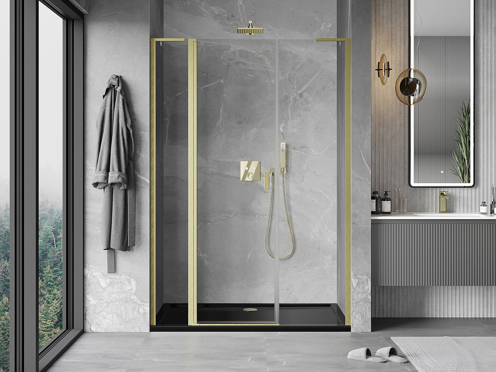 Mexen Mist L atveriamos dušo durys 150 cm, permatomos, auksinės šlifuotos - 8A4L-150-001-55-00