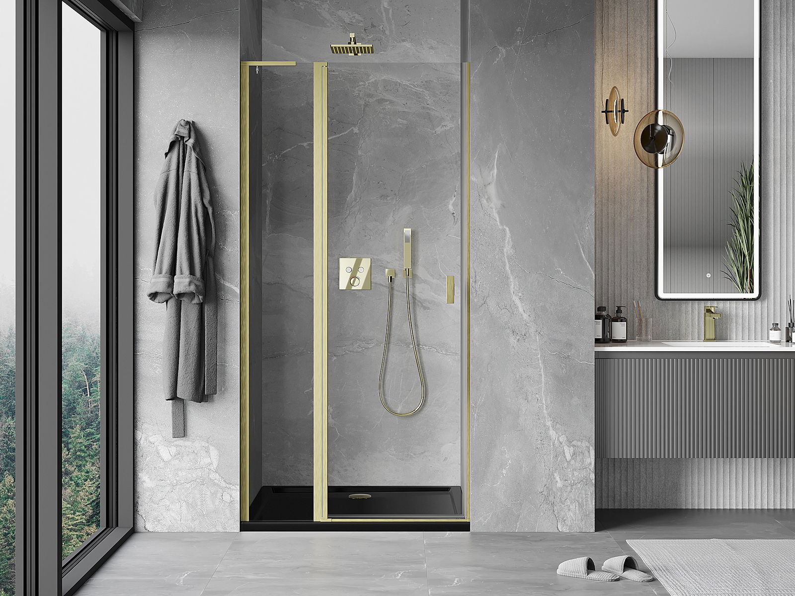Mexen Mist L atveriamos dušo durys 110 cm, skaidrus, auksinis šlifuotas - 8A4L-110-000-55-00