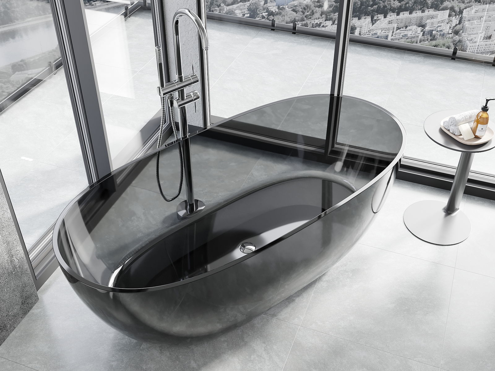 Tai moderni medžiaga, derinanti elegantišką išvaizdą su dideliu patvarumu. Ji atspari mechaniniams pažeidimams, lengvai valoma ir maloni liesti. Permatoma forma ir plonas vonios kraštas suteikia jai lengvumo ir unikalumo, sukuriant įspūdingą akcentą vonios kambario interjere.