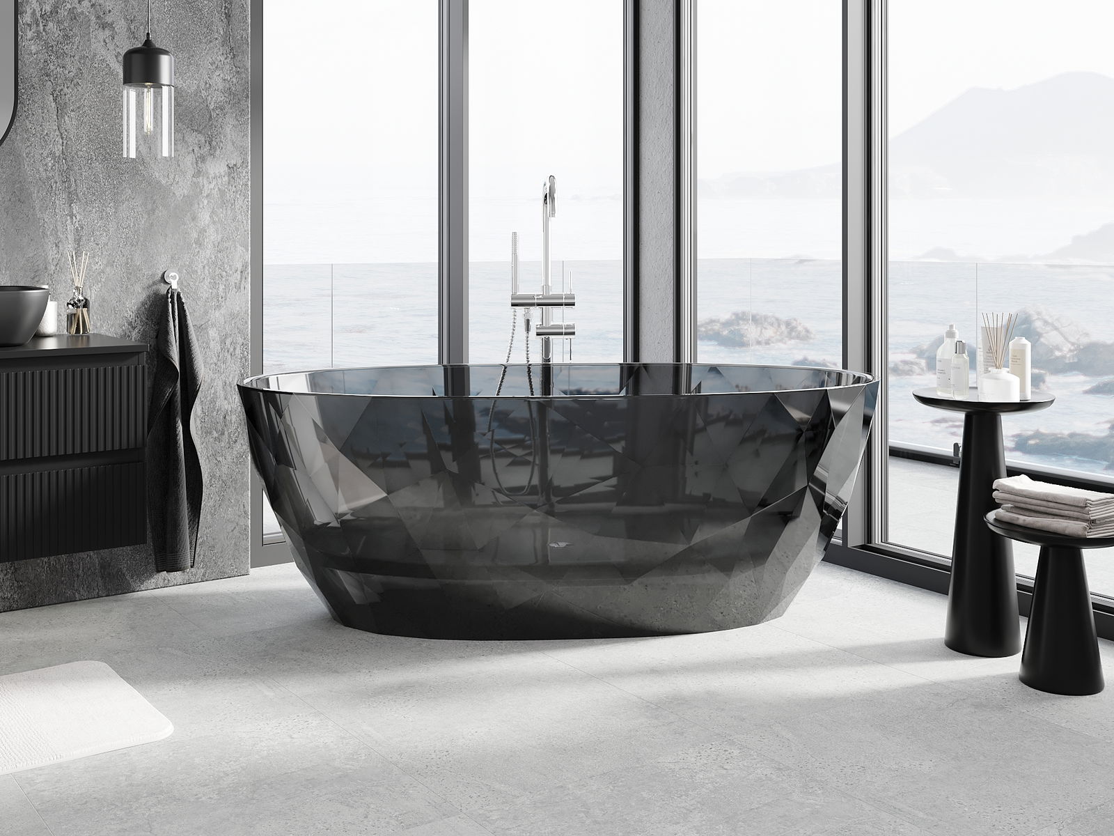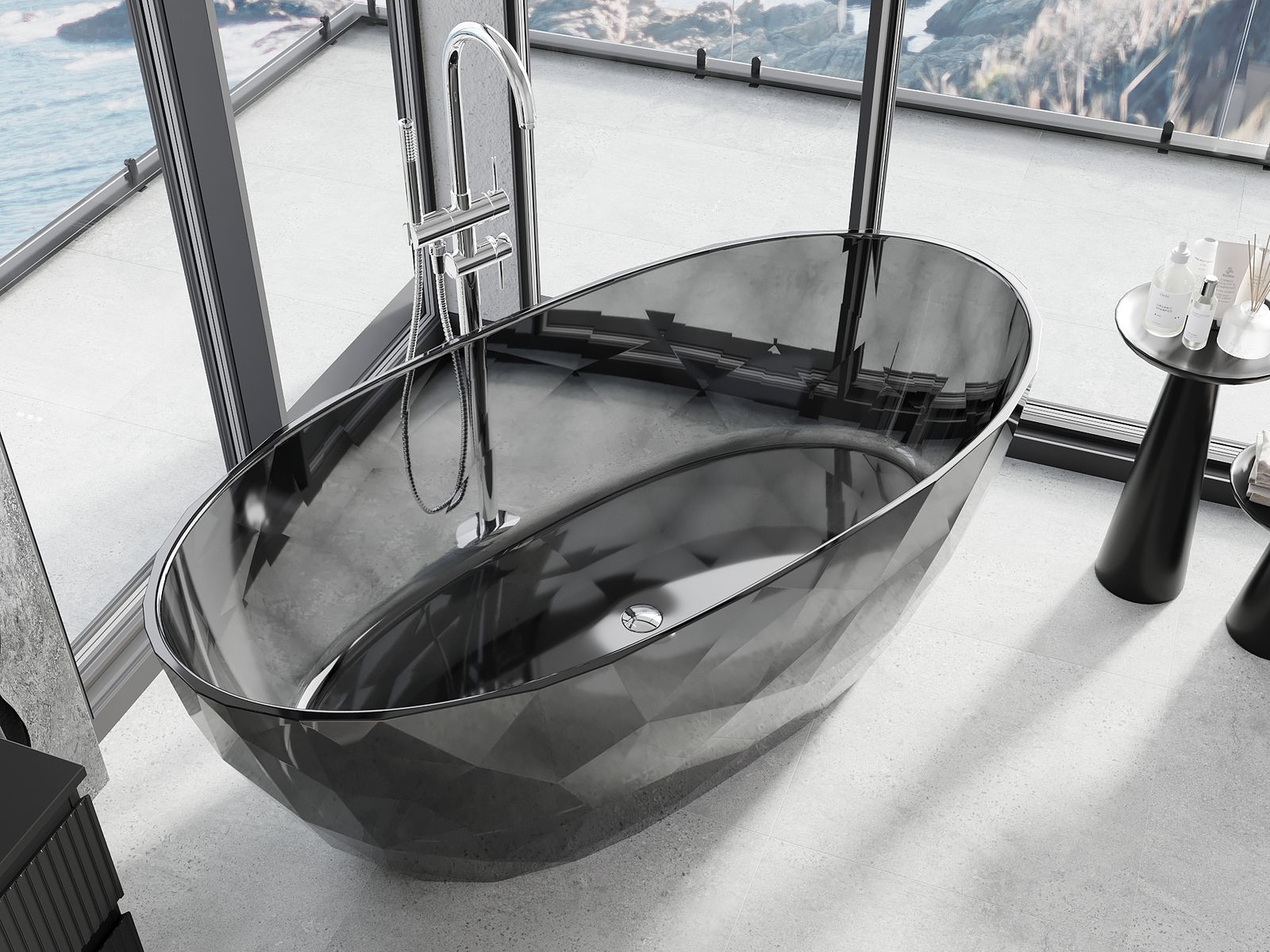 Tai moderni medžiaga, derinanti elegantišką išvaizdą su dideliu patvarumu. Ji atspari mechaniniams pažeidimams, lengvai valoma ir maloni liesti. Permatoma forma ir plonas vonios kraštas suteikia jai lengvumo ir unikalumo, sukuriant įspūdingą akcentą vonios kambario interjere.
