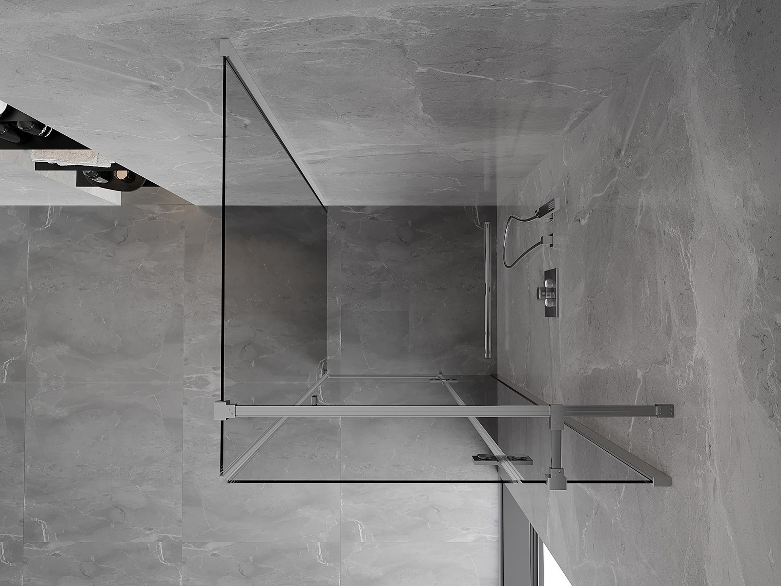 Dydis: 95x95 cm (95 cm dešinės durys, 95 cm siena)