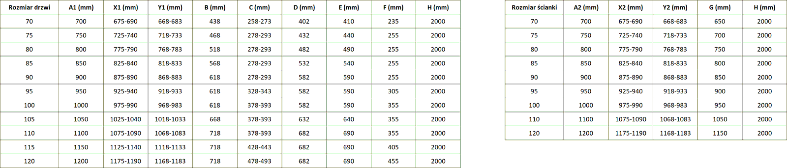 Dydis: 70x80 cm (dešinės pusės durys 70 cm, siena 80 cm)