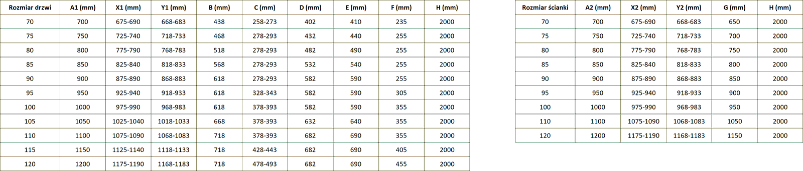 Dydis: 75x80 cm (dešinės durys 75 cm, sienelė 80 cm)